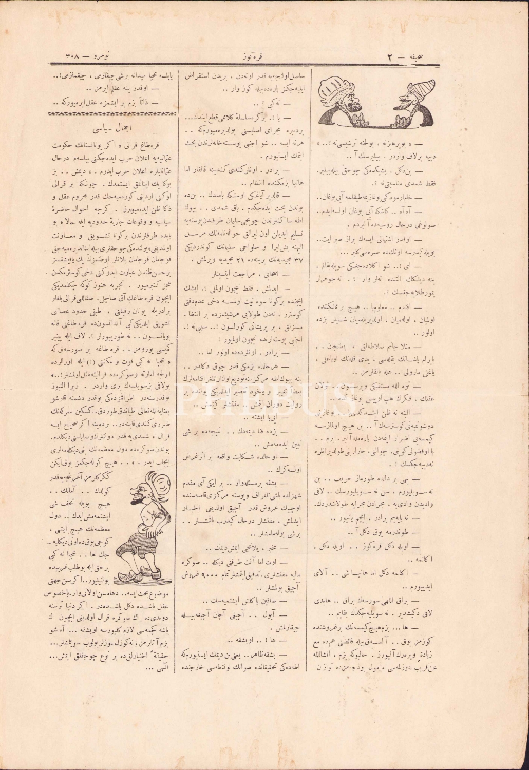 Osmanlıca Karagöz Mecmuası, 28 Mayıs 1327 tarihli, Numara: 308, 28x41 cm
