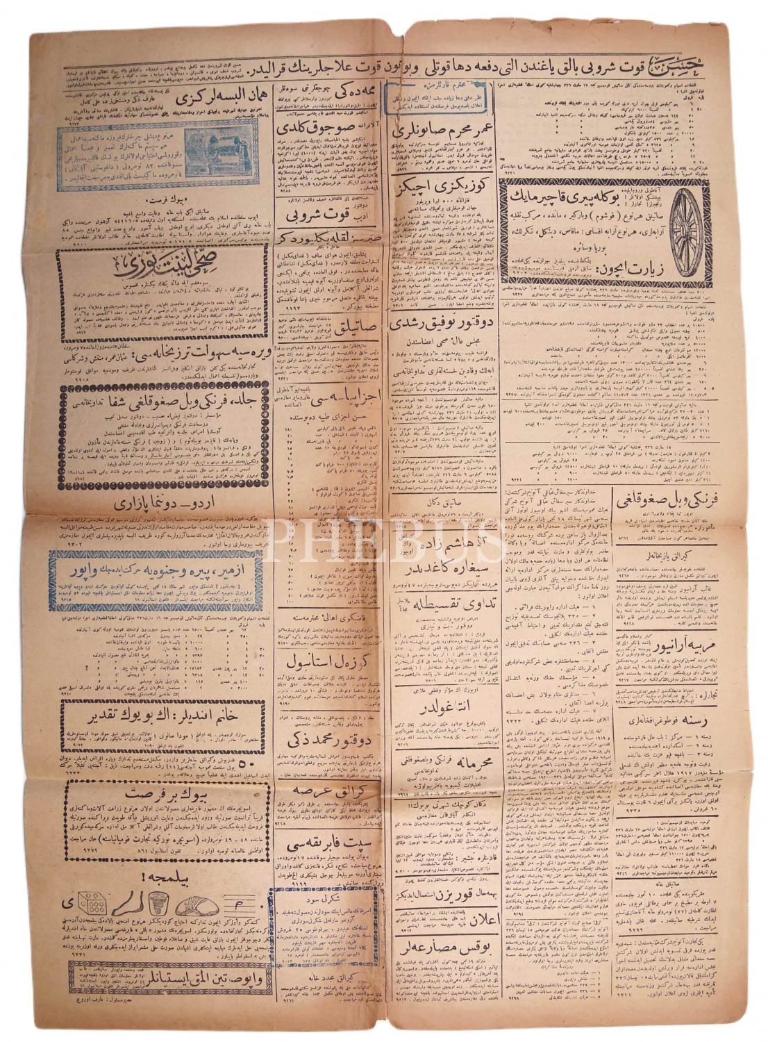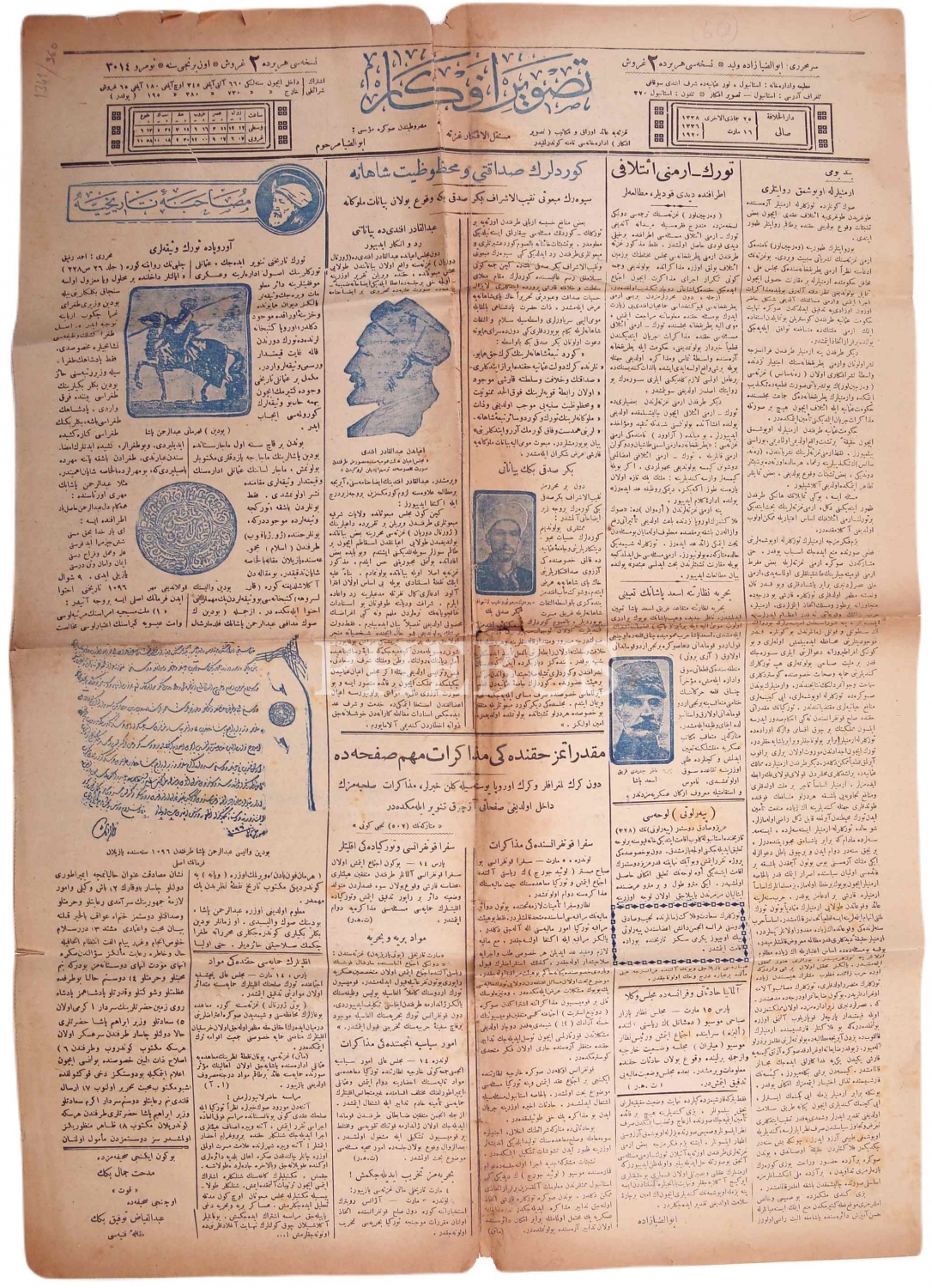 Osmanlıca Tasvir-i Efkar, 25 Cemaziyelahir 1338 tarihli, 4 sayfa, 43x64 cm