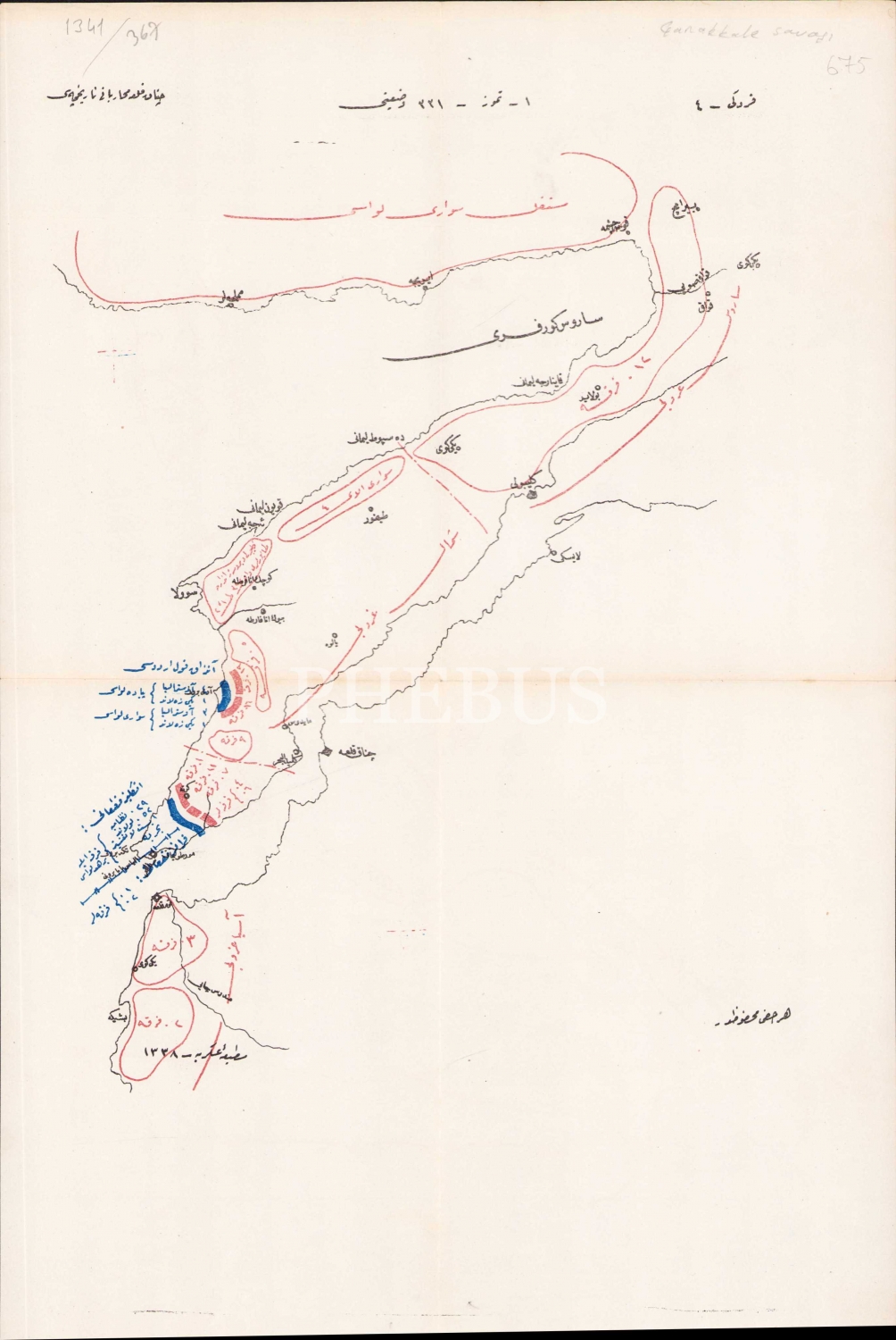Osmanlıca Çanakkale Savaşı krokisi, 27x20 cm
