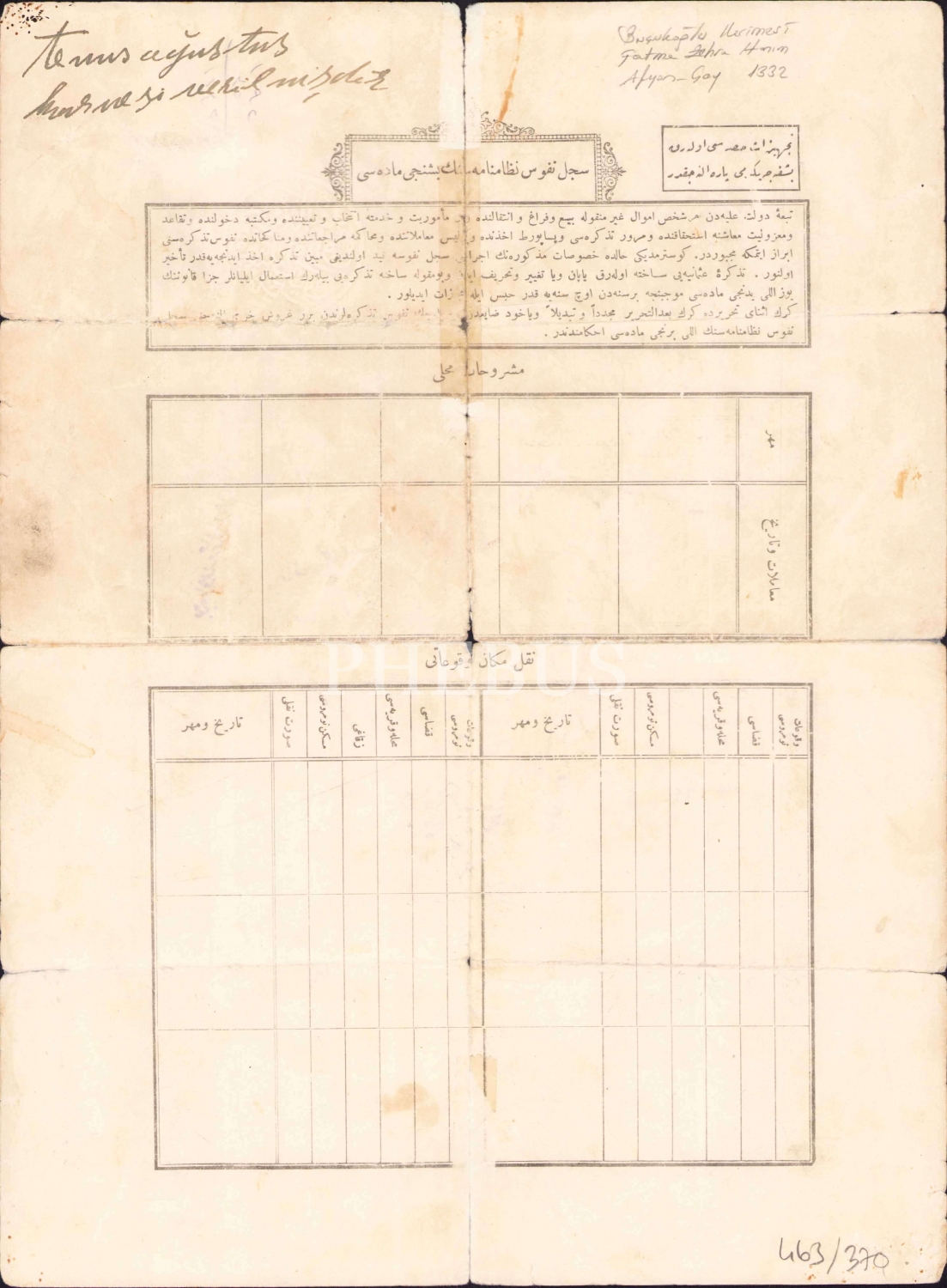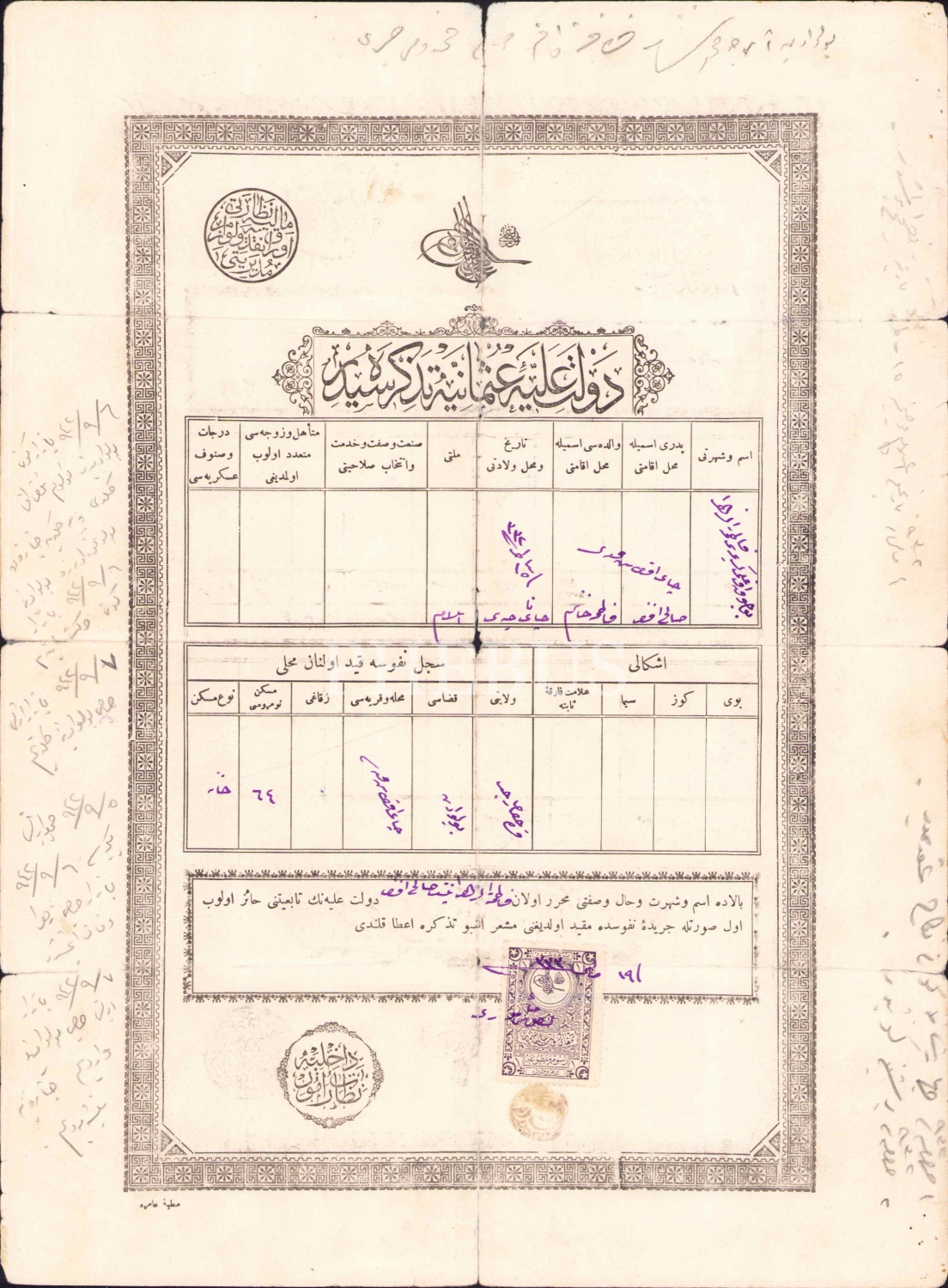 Osmanlıca nüfus tezkeresi, 1332 tarihli, haliyle, 24x34 cm