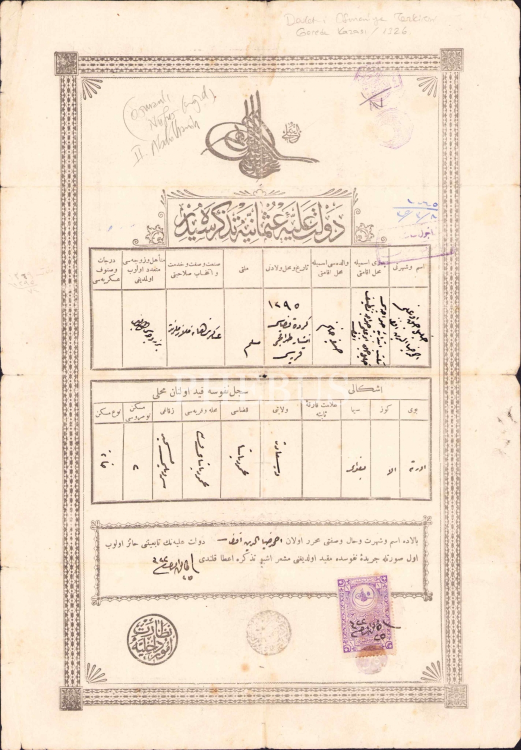 Osmanlıca nüfus tezkeresi, Gerede Kazası