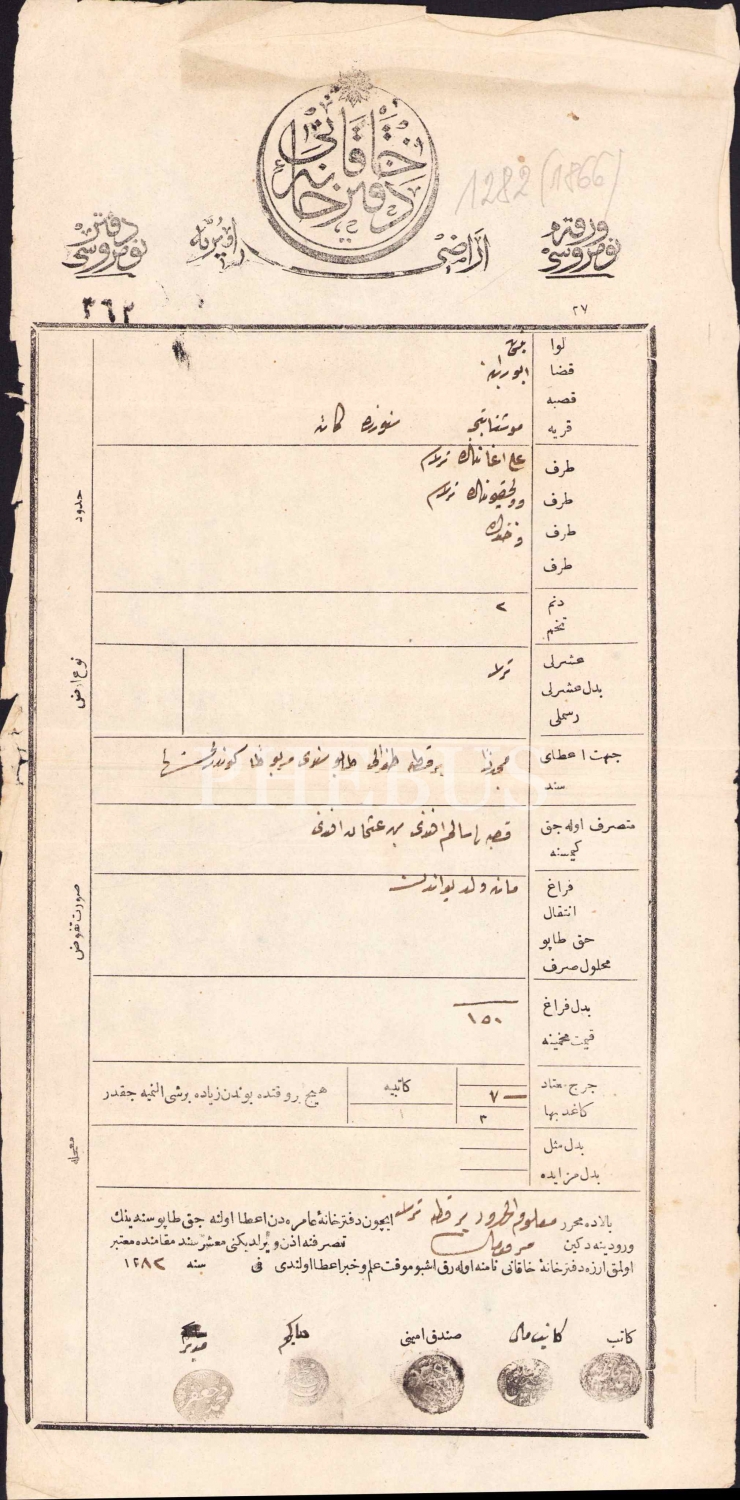 Osmanlıca tarla tapusu, Defter-i Hakani, 1866 tarihli, 18x38 cm