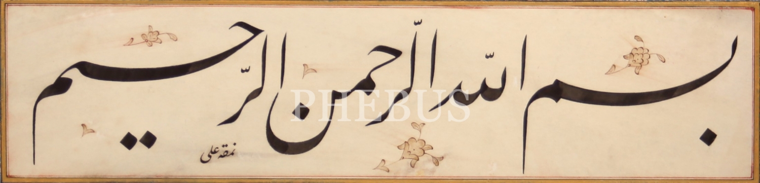 Celi Talik Besmele, Ali Alparslan ketebeli, ebrulu, çerçeveli, yazı, 40x10 cm