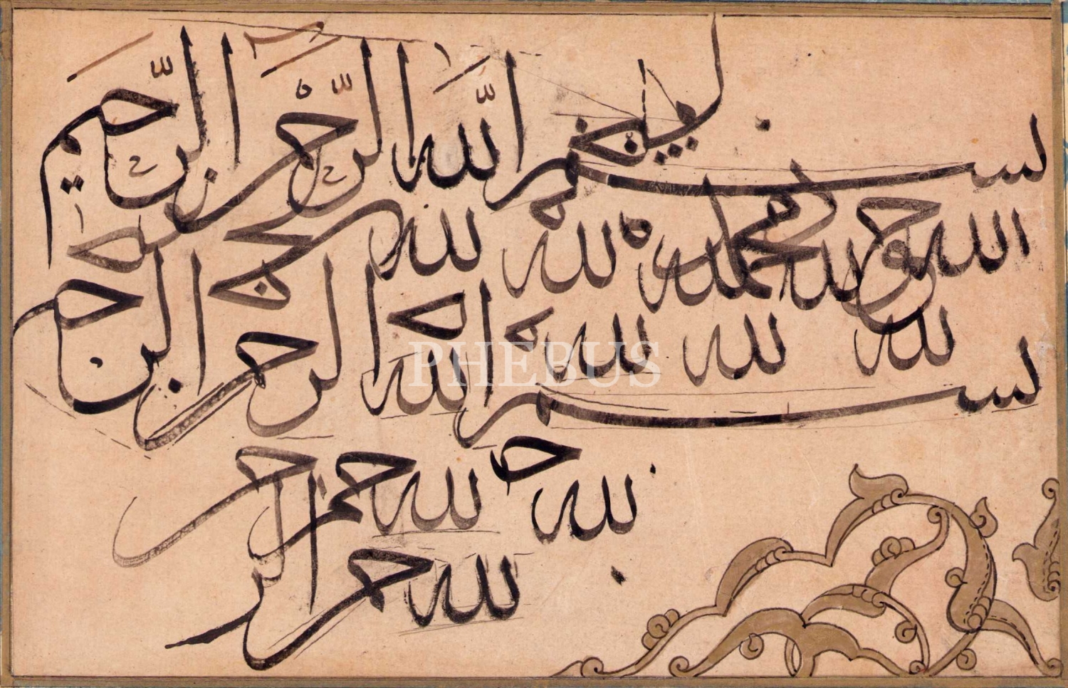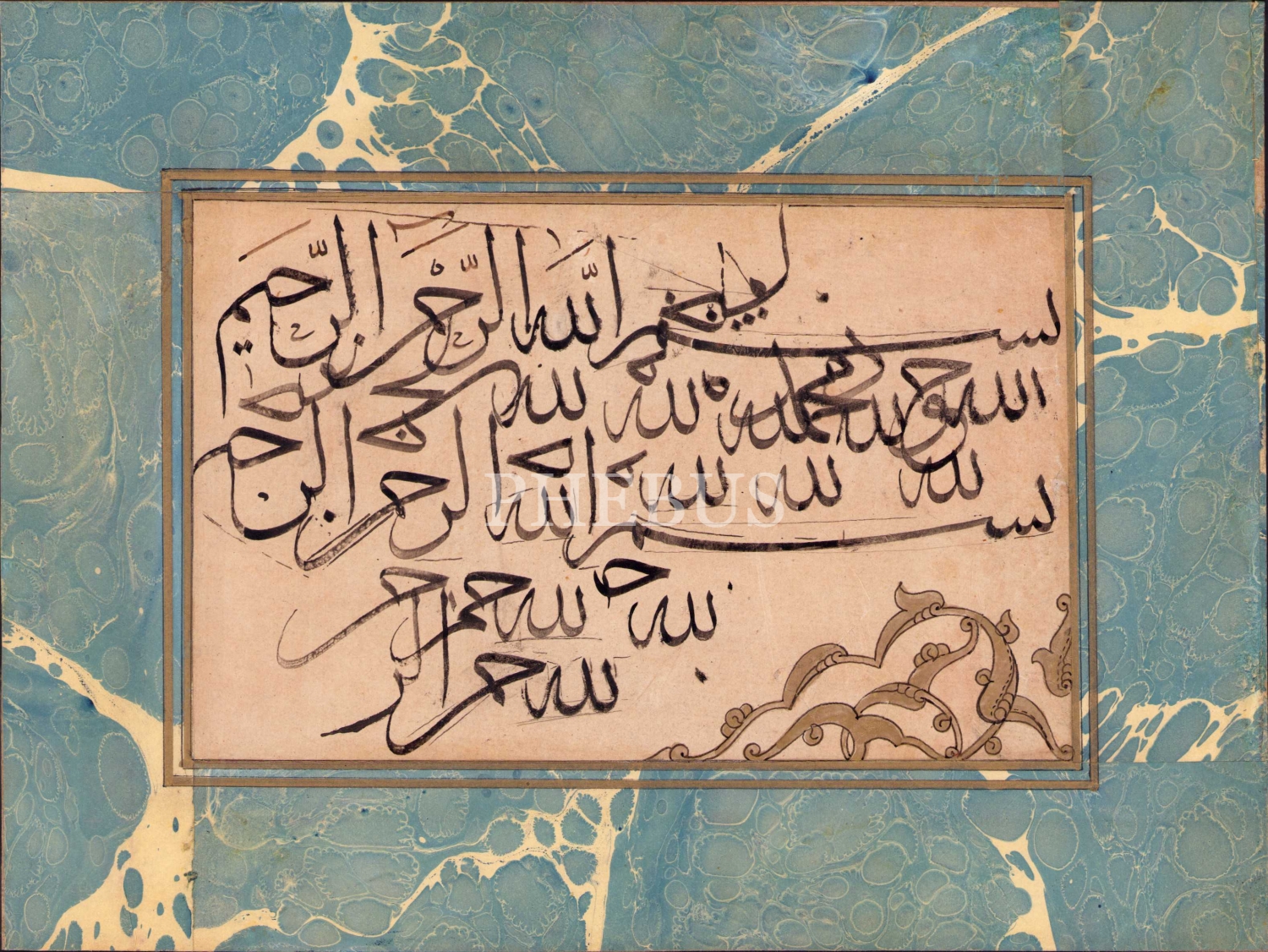 Hoca İşi Ebru Pervazlı Sülüs Besmele ve karalama, 20x12 cm