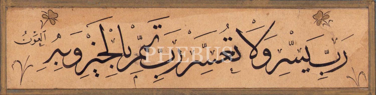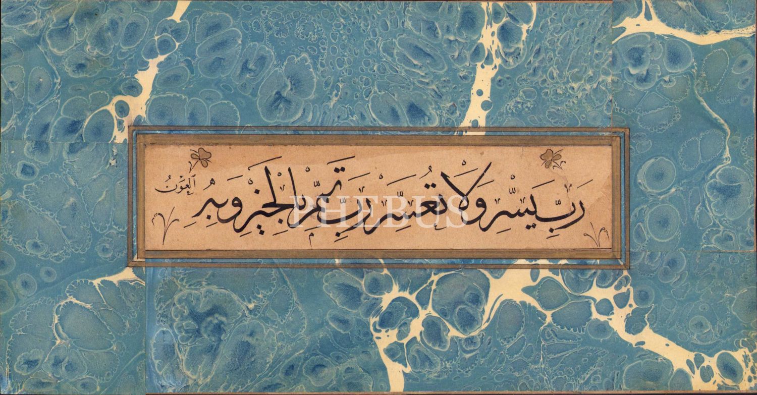 Hoca İşi Sülüs yazı, Rabbi Yessir, ebru pervazlı, 18x5 cm
