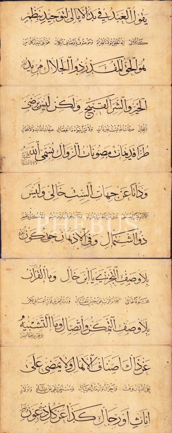 Erken Dönem Hoca İşi Emali Kasidesi'nden Sülüs Nesih yazı, birleşik halde 6 parça, 23x68 cm