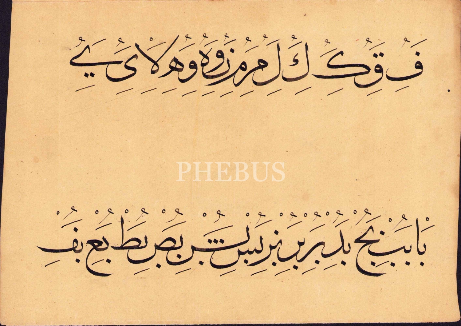 Sülüs Hurufat meşki, birleşik halde 2 parça, 24x34 cm