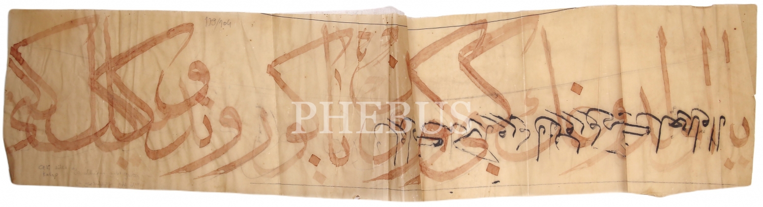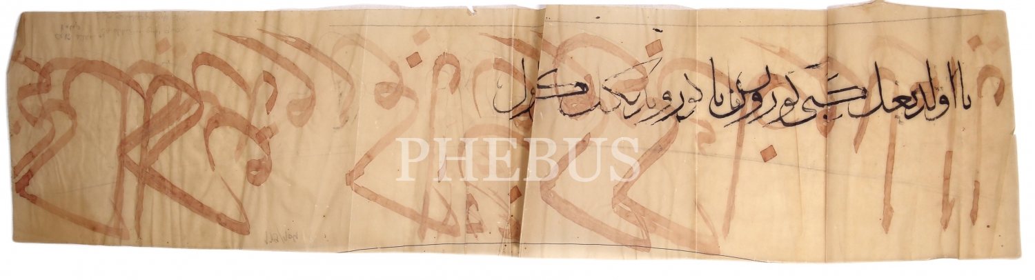 Celi Sülüs istif karalama, Hz. Mevlana'dan, "Ya olduğun gibi görün ya da göründüğün gibi ol", Hattat Halim Özyazıcı terekesinden, 70x17 cm