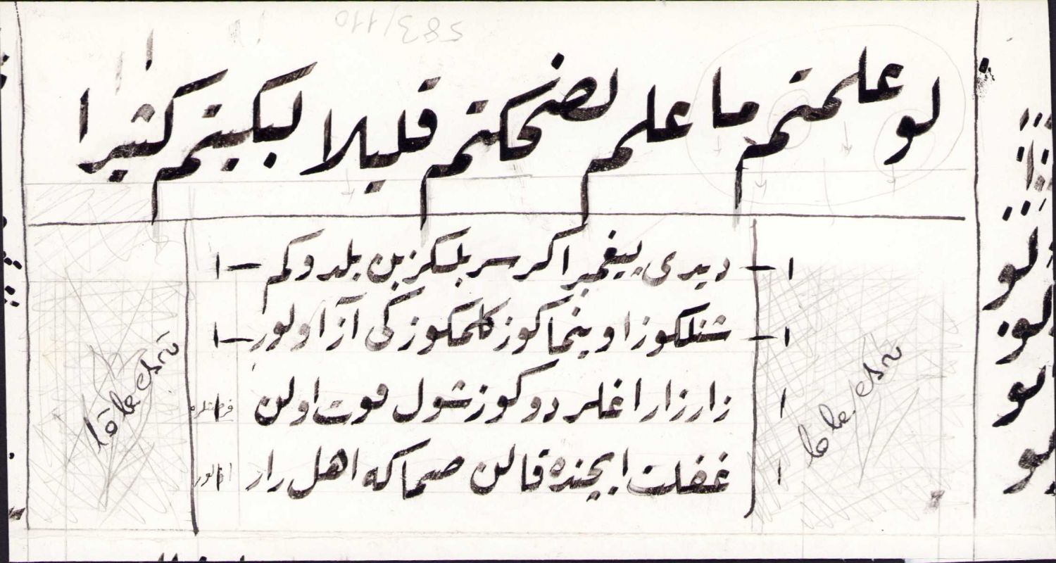 Takvim yaprağı arkasına Rika yazı ile kıta taslağı, Hattat Ali Alparslan'ın terekesinden, 19x10 cm