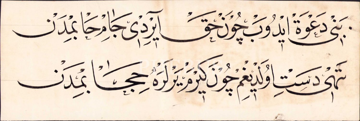 Nesih yazı, "Tehi dest olduğum çün girem yerlere hicabımdan", 30x10 cm
