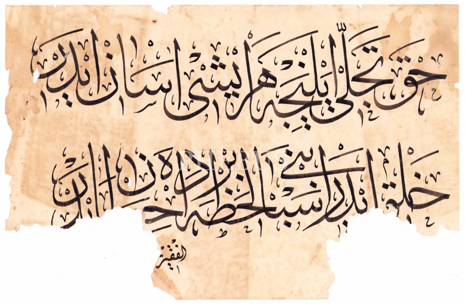 Celi Sülüs yazı, "Hak tecelli eyleyince her işi asan eyler", Halim Efendi terekesinden, haliyle, 36x23 cm