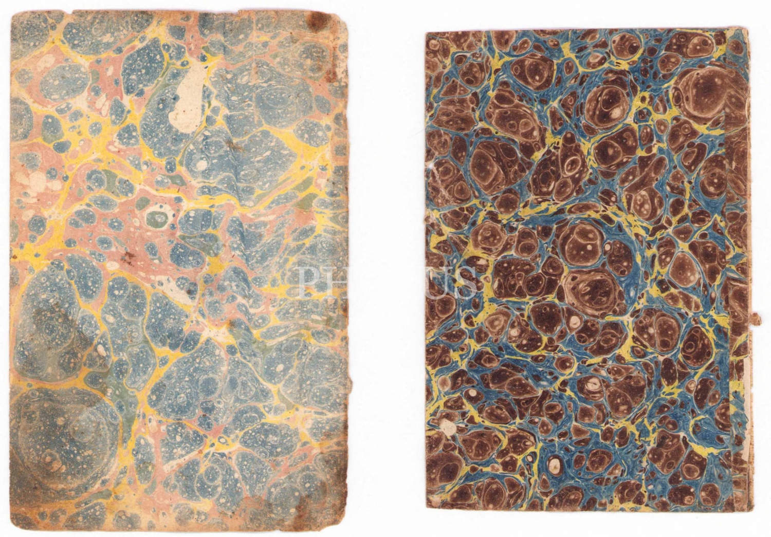 İki adet Erken dönem ebru, her biri 10x17 cm