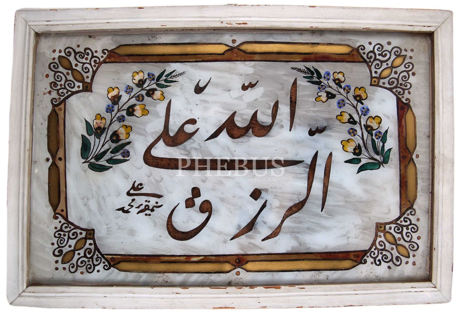 Camaltı Talik yazı “er-rızku alallah” (rızık Allah’tandır) Muhammed Ali ketebeli, çerçeveli, 32x22 cm