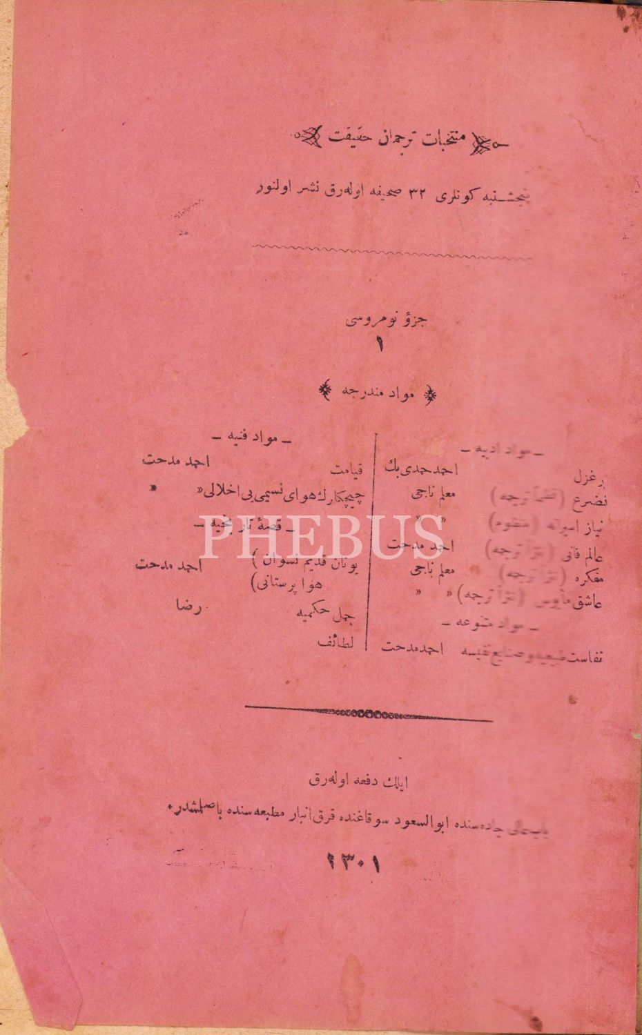 Osmanlıca Müntehabat-ı Tercüman-ı Hakikat 1. cilt, 1301, 800 sayfa, 26x19 cm