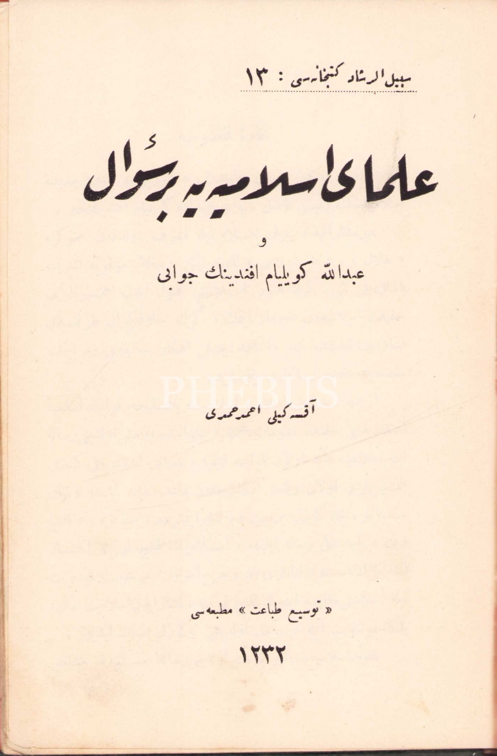 Osmanlıca tek ciltte iki eser: Safahat 3. kitap Hakkın Sesleri, Mehmed Akif [Ersoy], 64 sayfa, 1331, Ulema-ı İslamiyeye Bir Sual ve Abdullah Güvilyam Efendinin Cevabı, Ahmed Hamdi Aksekili, 32 sayfa, 1332, 19x13 cm