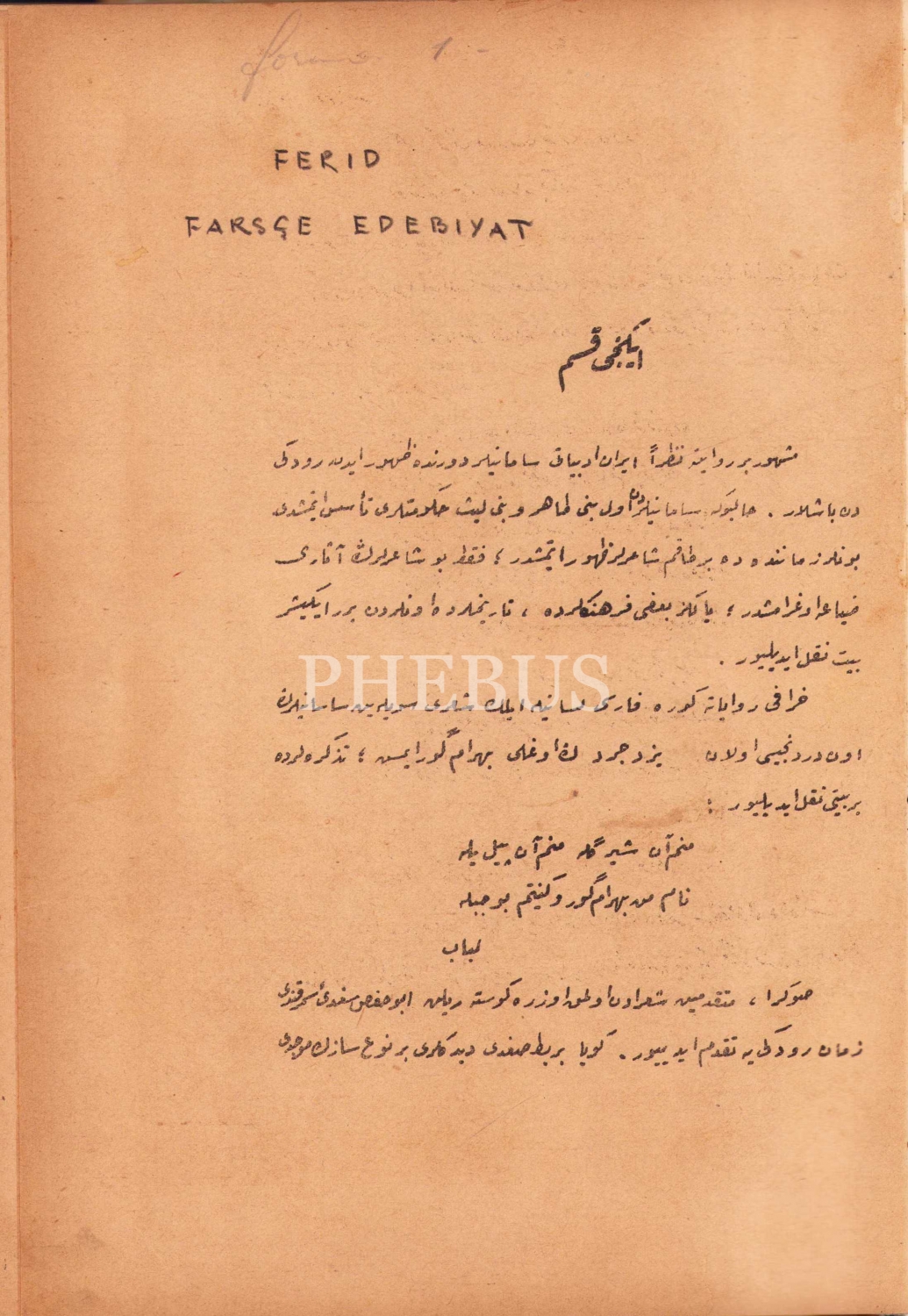 Osmanlıca Farsça Edebiyat, Ferit, 256 sayfa, 28x20 cm