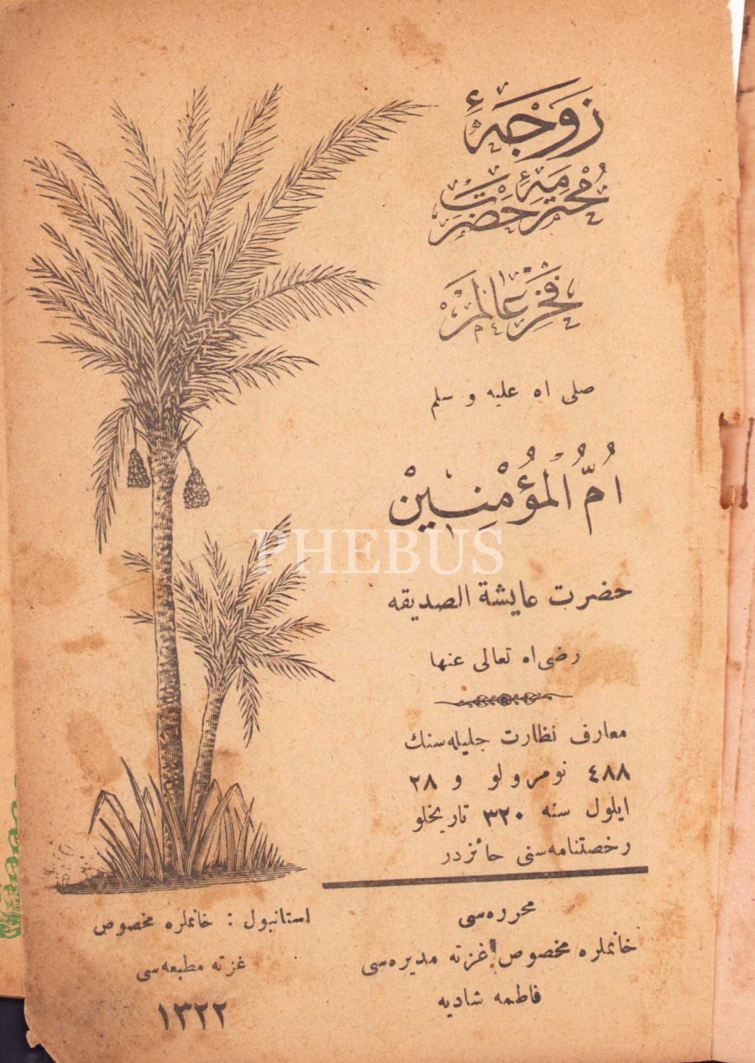 Osmanlıca Zevce-i Muhtereme-i Hazret-i Fahr-i Ålem Sallallhû Aleyh-i ve Sellem Ümm'ü'l-müminîn Hazret-i Ayişe'tüs-sıddıka Radıyallahû Teâlâ Anhû, Fatma Şadiye, İstanbul 1322 Hanımlara Mahsûs Gazete Matbaası,