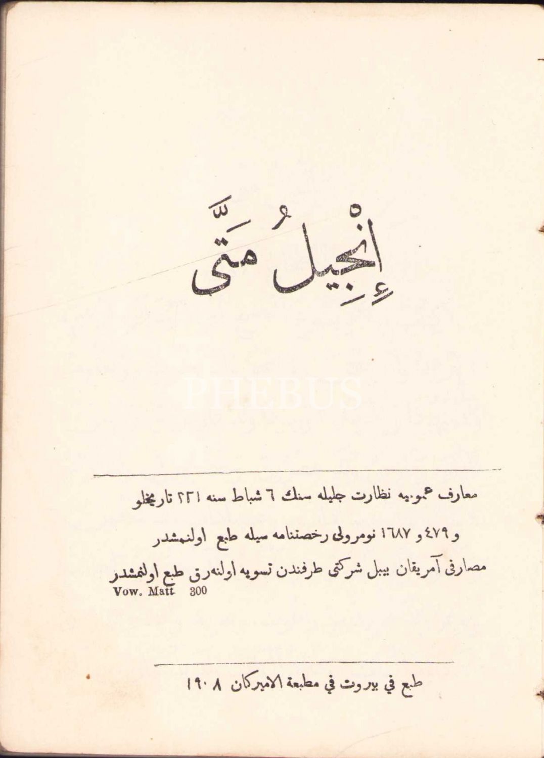 Arapça Matta İncili, 1907 Beyrut, 150 sayfa, 14x10 cm