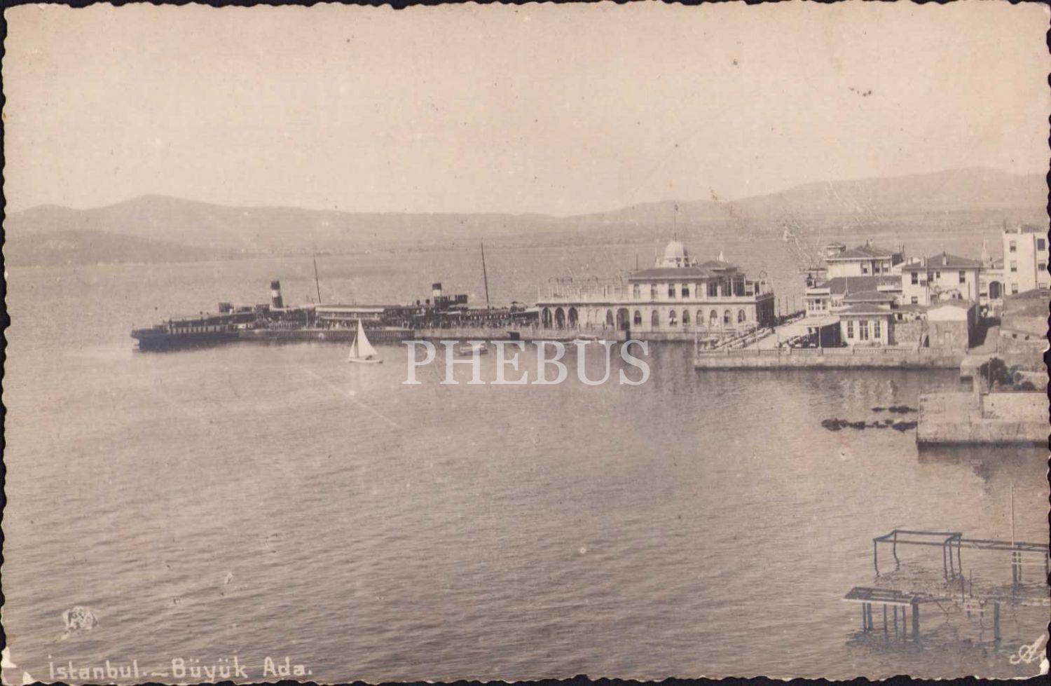 İstanbul Büyükada Limanı manzarası, yelkenli kayık detaylı, 13x9cm