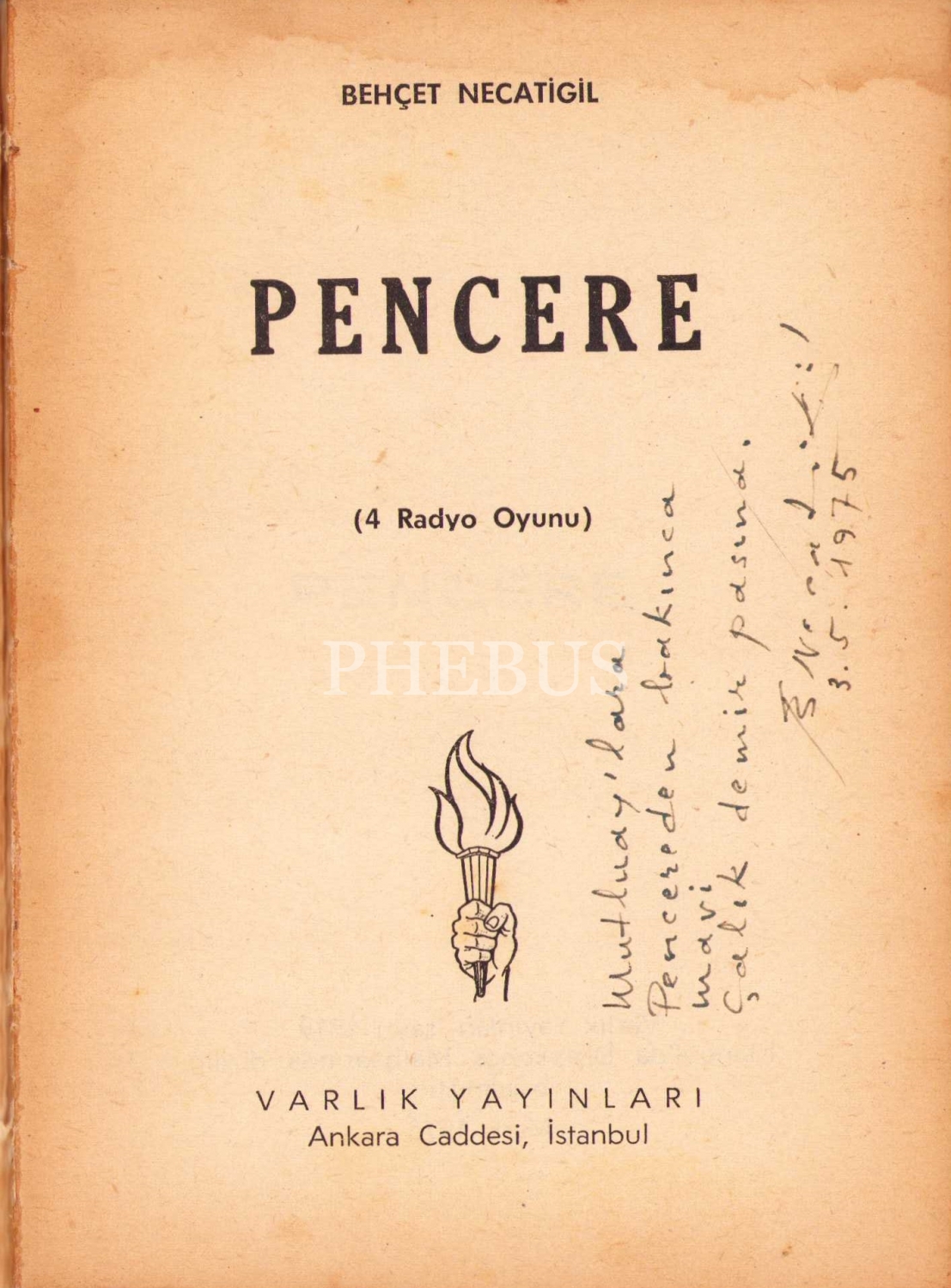 Pencere [4 Radyo Oyunu], Behçet Necatigil'den Yazar Rauf Mutluay'a imzalı ve ithaflı, İlk Baskı, İstanbul 1975, sayfalar kapaktan kopuk, 87 sayfa