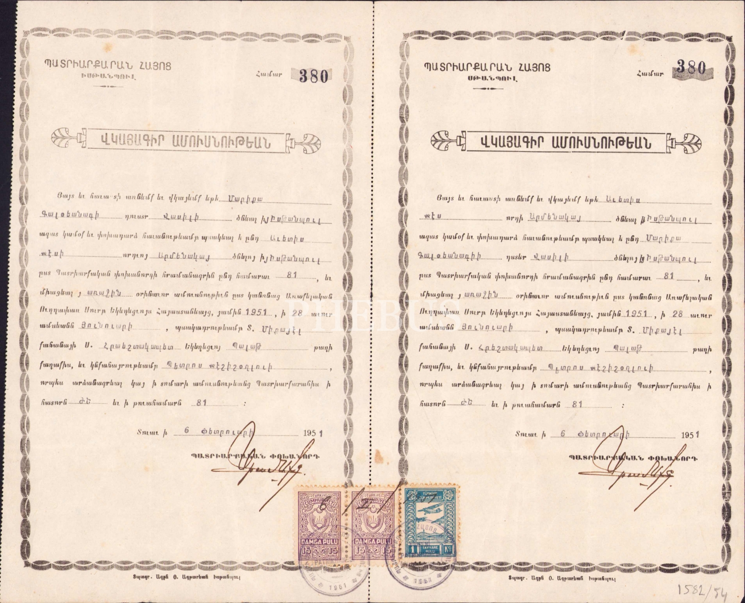 Ermenice doğum kağıdı 1951, 14x24 cm