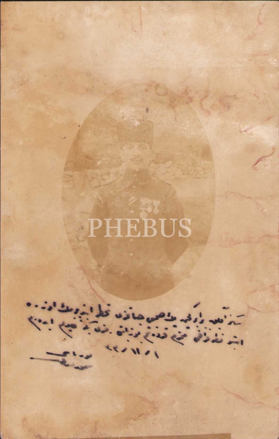 İstiklal madalyalı, kalpaklı subay hatıra kabin fotoğrafı, Osmanlıca ithaflı, haliyle