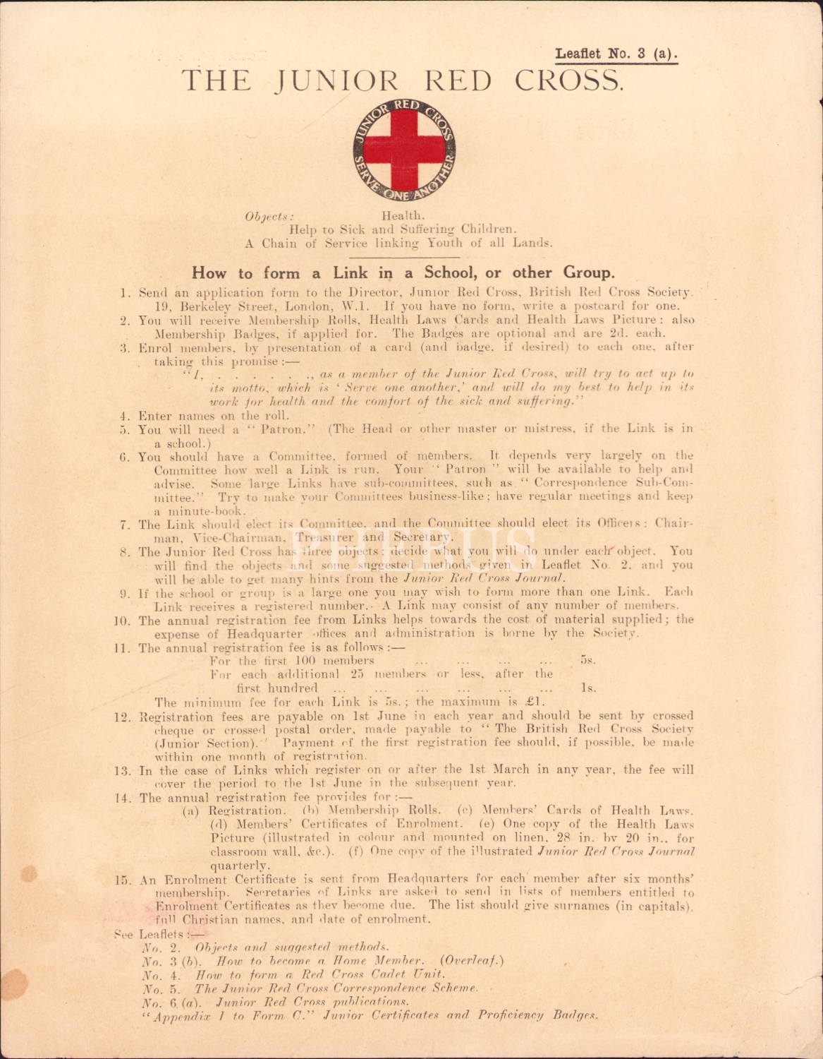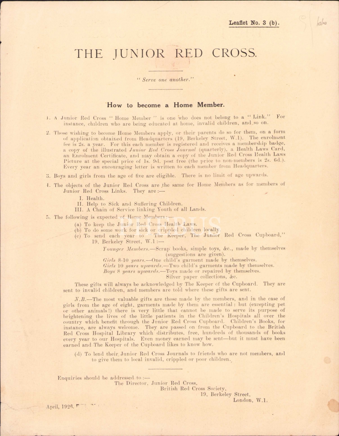 Genç Kızıl Haç [The Junior Red Cross] üyelik broşürü, Nisan 1926, 19x25 cm