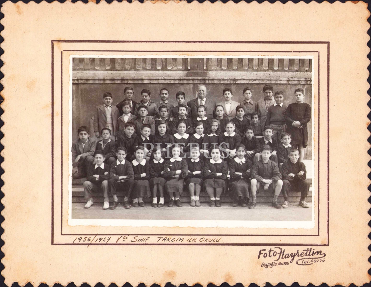 1956 - 57 Birinci sınıf Taksim İlkokulu, Foto Hayrettin damgalı, 16x10 cm