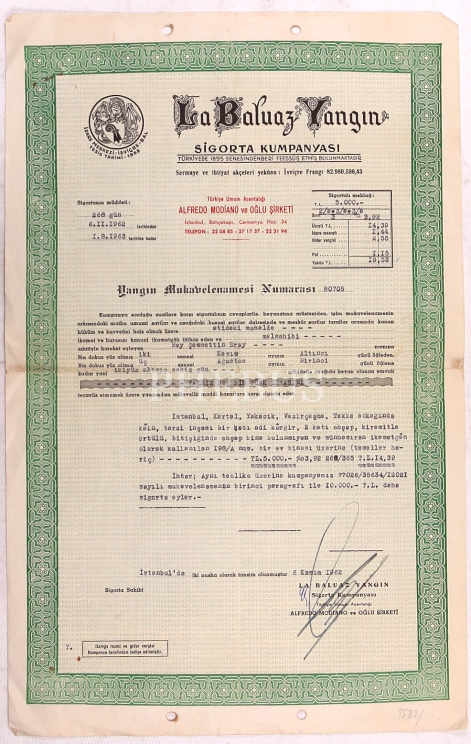 La Boluaz Yangın Sigortası, 1962, 28x44 cm