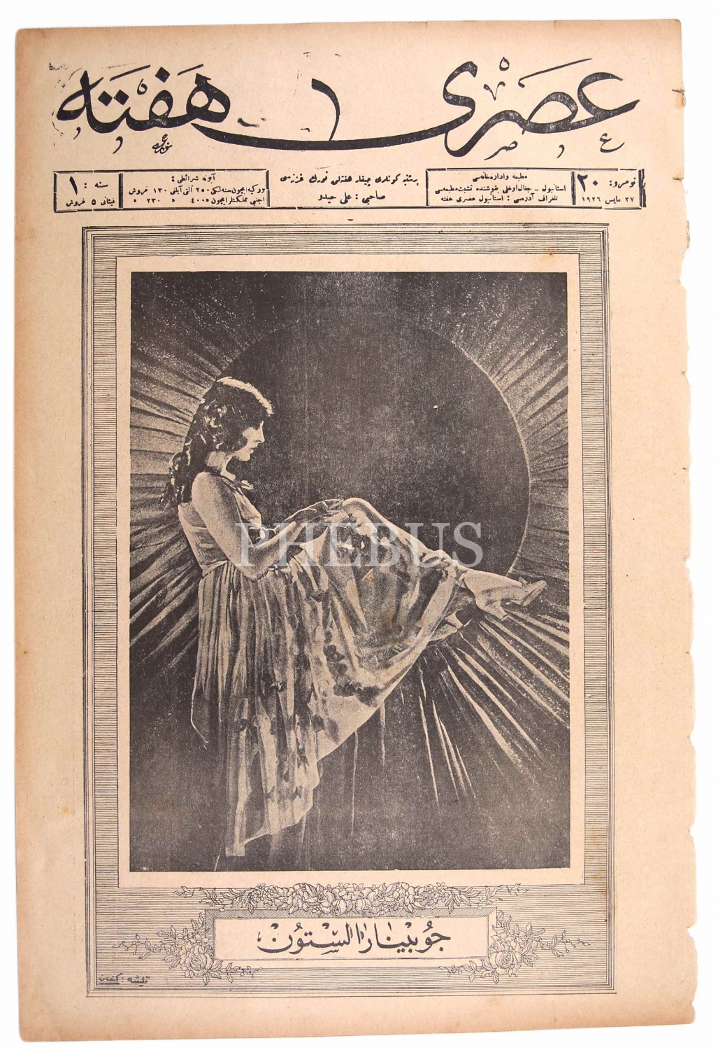 Osmanlıca Asri Hafta - haftalık Türk gazetesi, 27 Mayıs 1926, sahibi Ali Haydar,