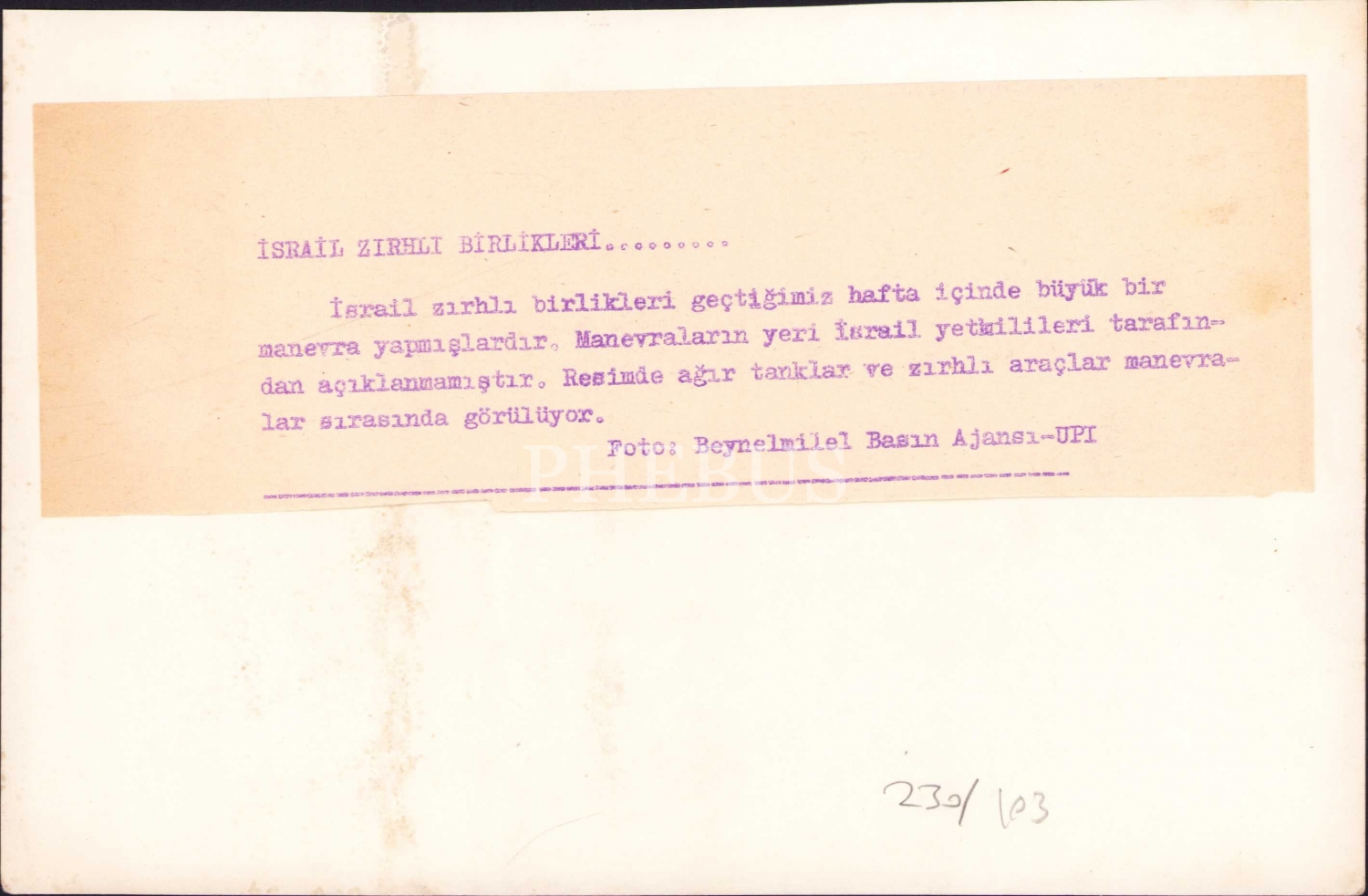 İsrail Zırhlı Birlikleri, Foto Beynelmilel Basın Ajansı - UPI, 23x14 cm