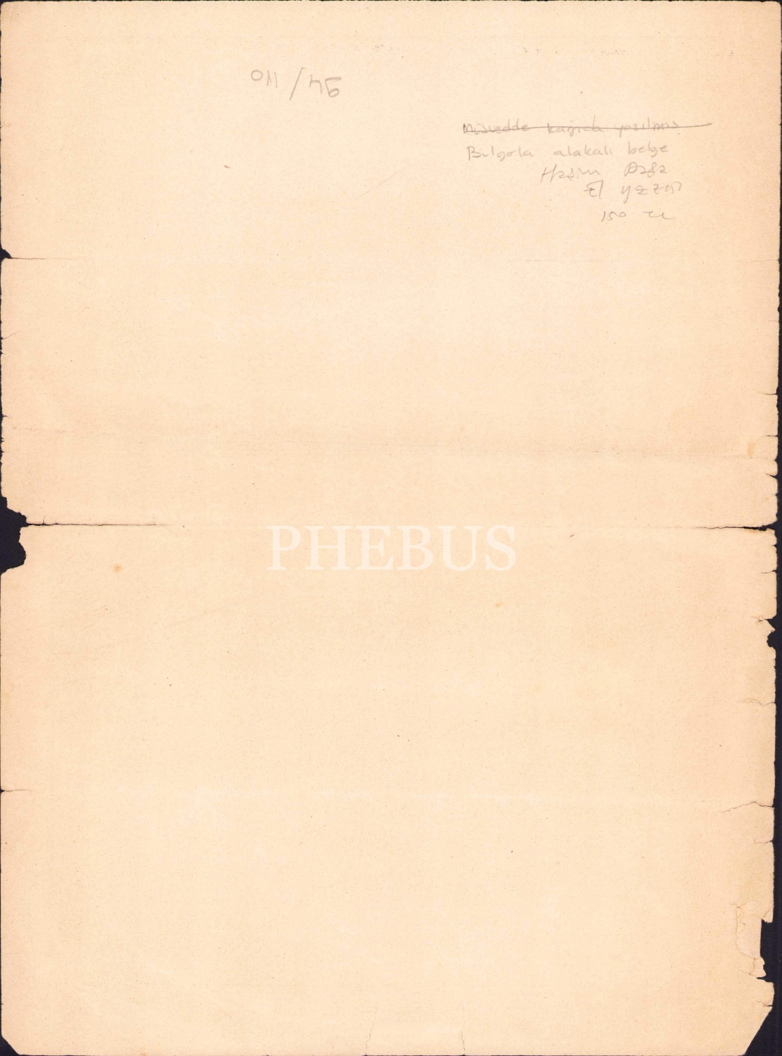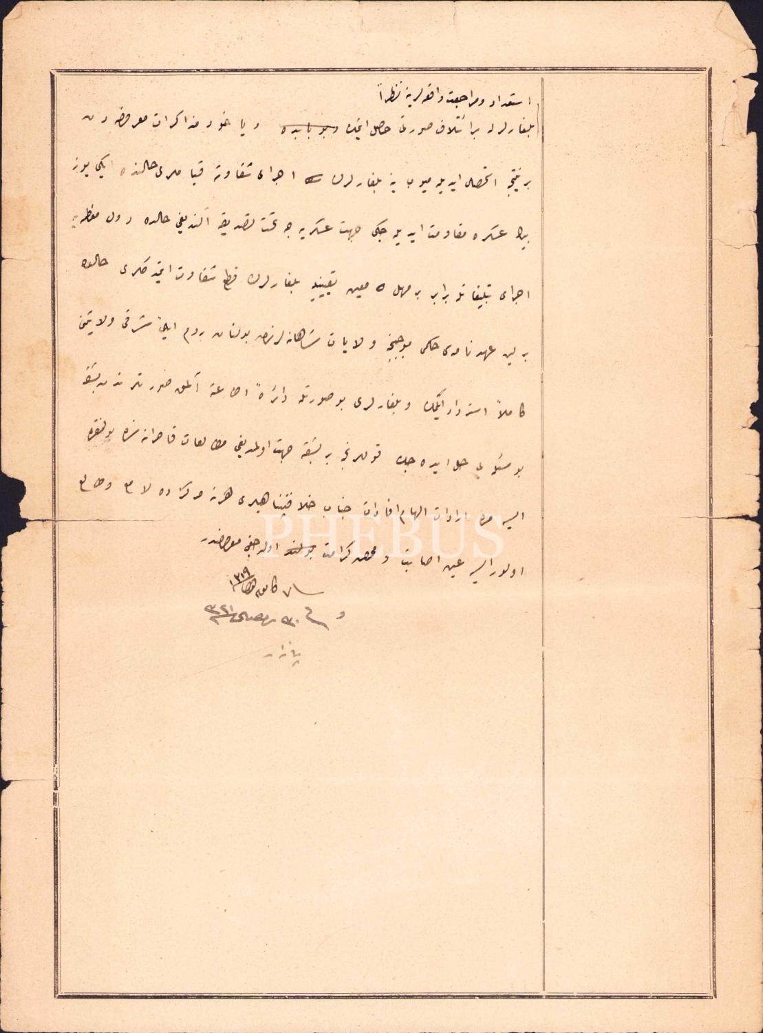 Sultan Abdülhamid Han'ın Maarif Nazırı Mustafa Haşim Paşa el yazısıyla Bulgarlar ile alakalı 1319 tarihli Osmanlıca belge, kenarları haliyle, 23x32 cm