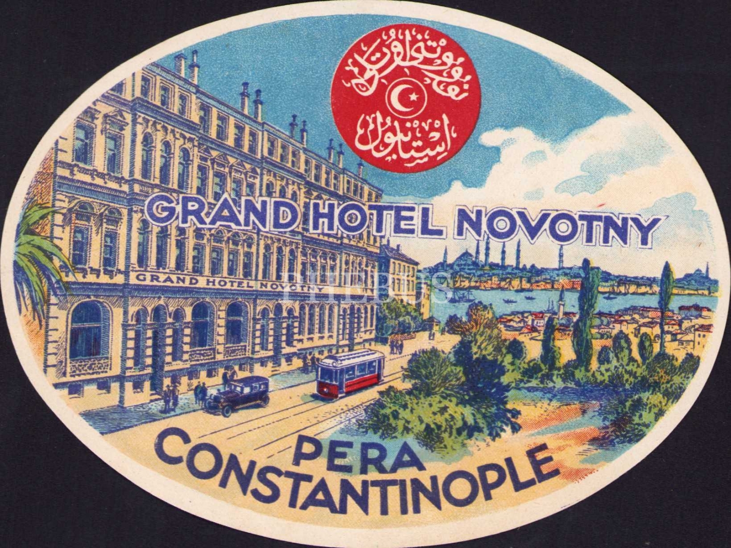 Osmanlıca, İngilizce iki dilde, Grand Hotel Novotny, Pera Constantinople vinyet, 12x9 cm