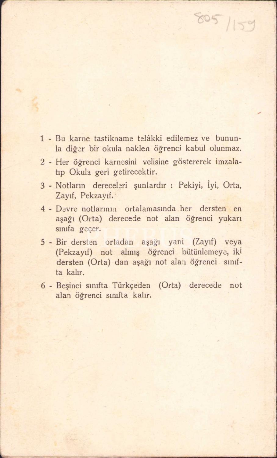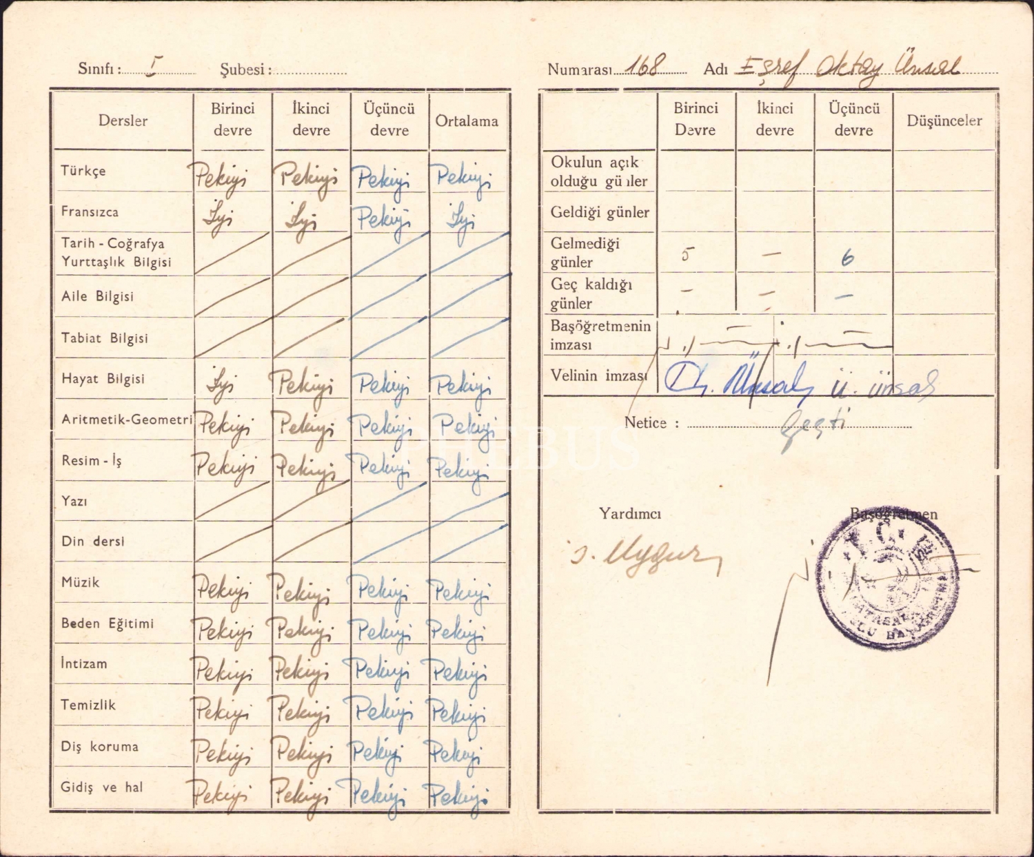 Galatasaray Lisesi İlk Kısım Karne 1956 - 1957, 11x18 cm