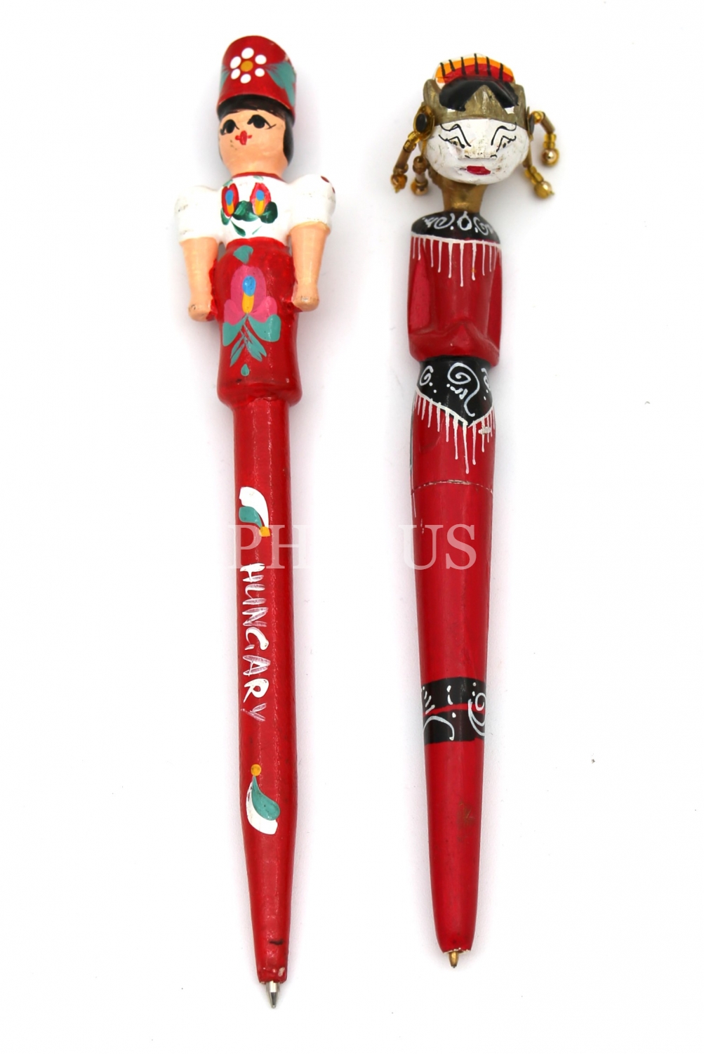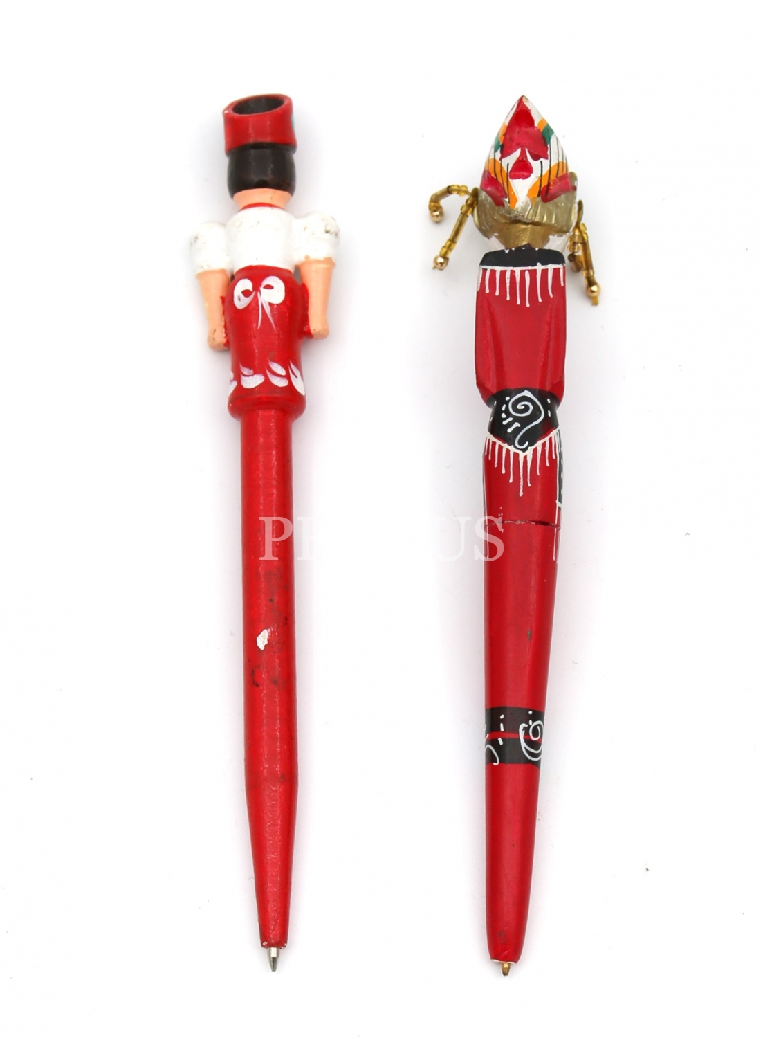 Ahşap, figürlü tükenmez kalem, 2 adet, 16 cm
