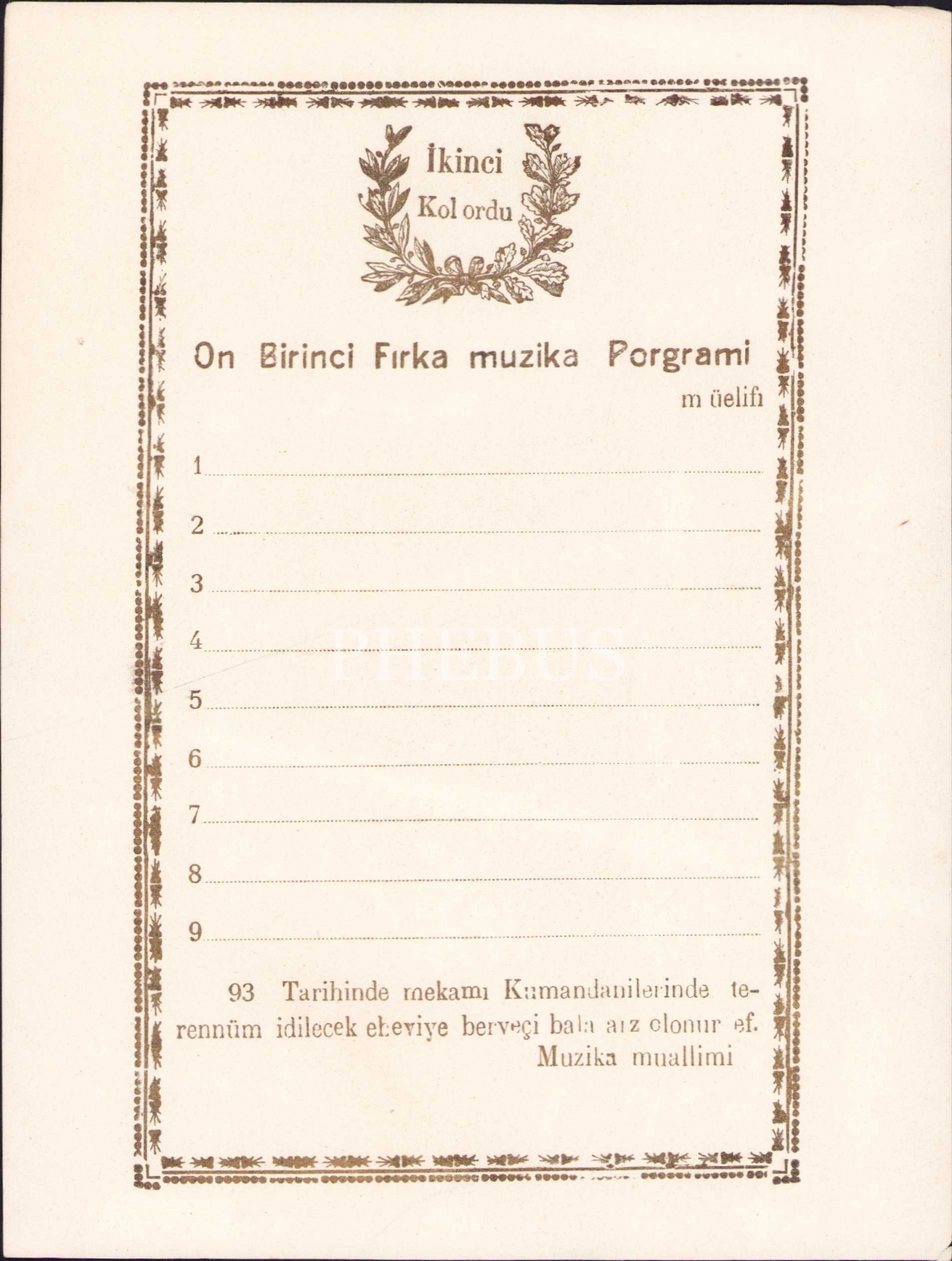 İkinci Kolordu On Birinci Fırka Muzika Programı, 15x20 cm