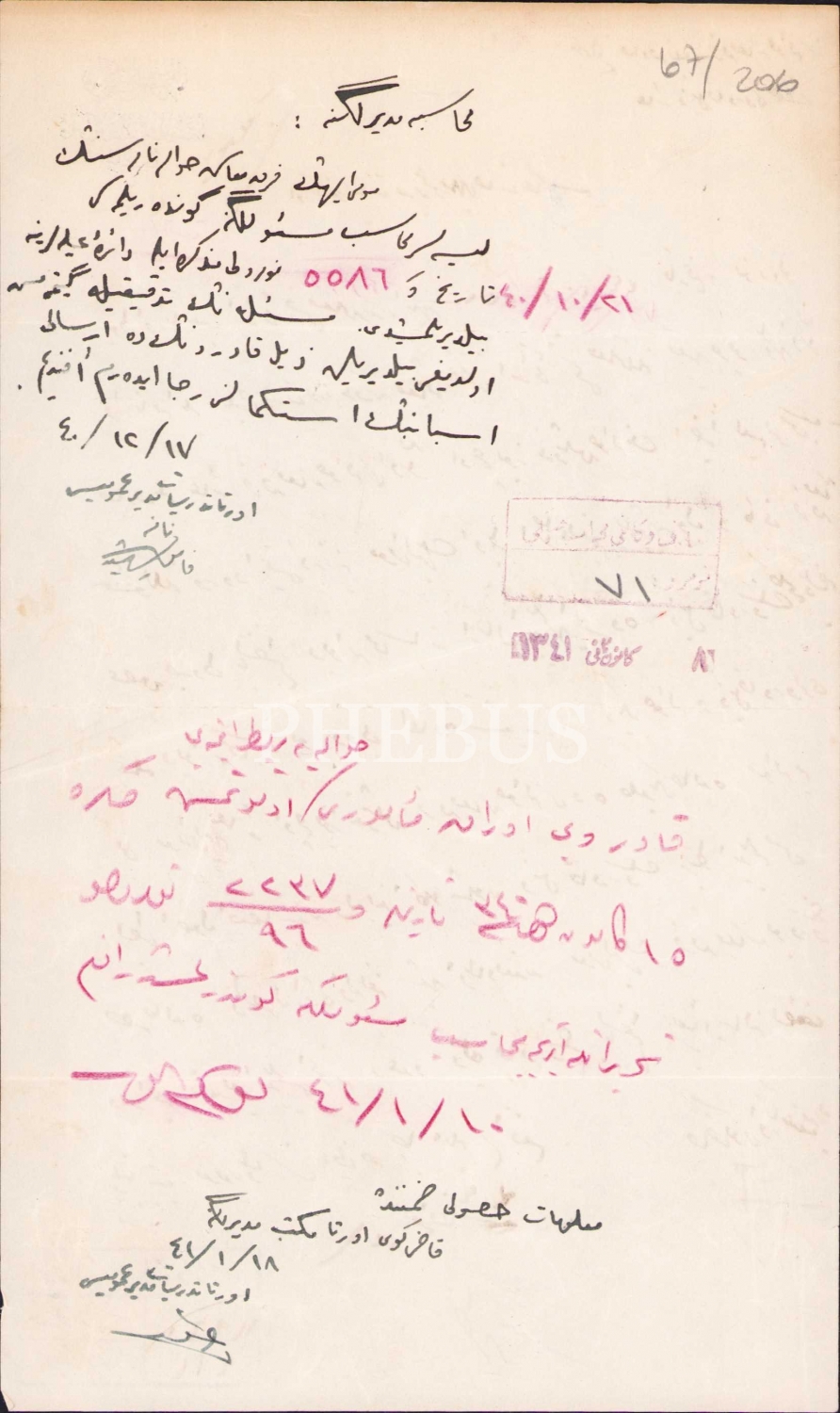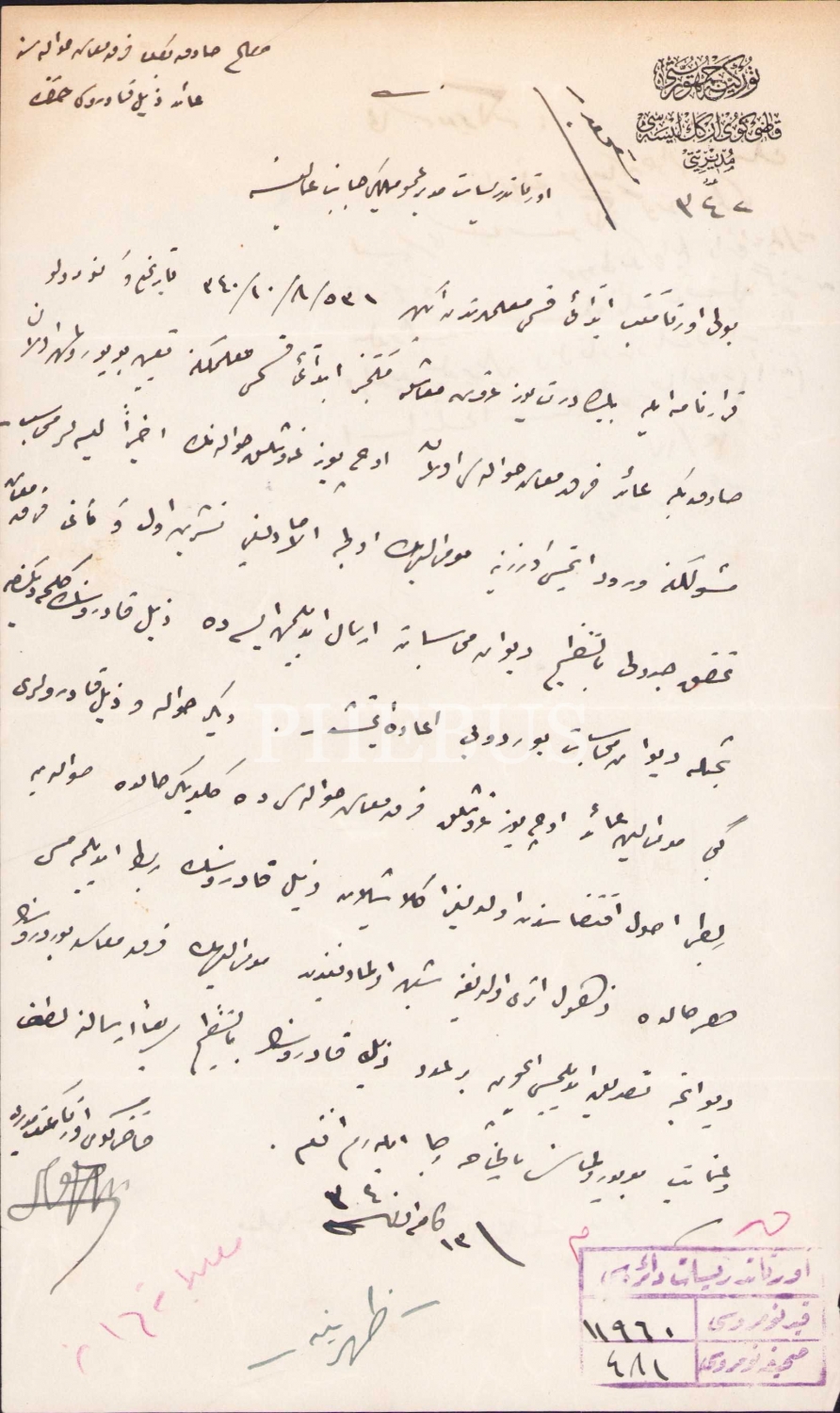 Osmanlıca TC Kadıköy Erkek Lisesi Müdürlüğü antetli orta tedrisat müdürlüğüne yazılmış 1340 tarihli evrak, 13x23 cm