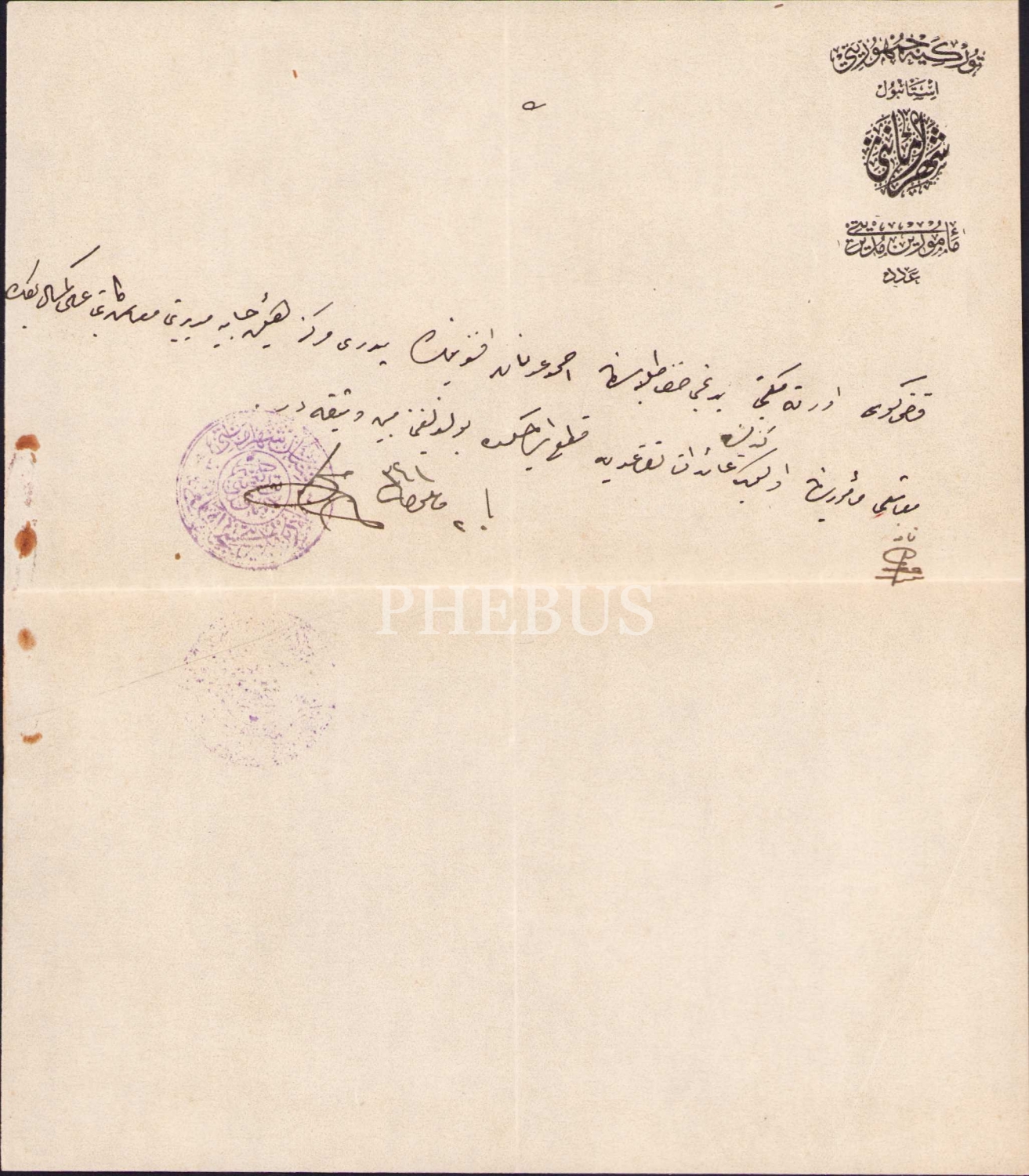 TC İstanbul Şehremaneti Memur Müdürlüğü antetli Kadıköy Orta mektebi talebesi hakkındaki 1341 tarihli Osmanlıca dilekçe,16x17 cm