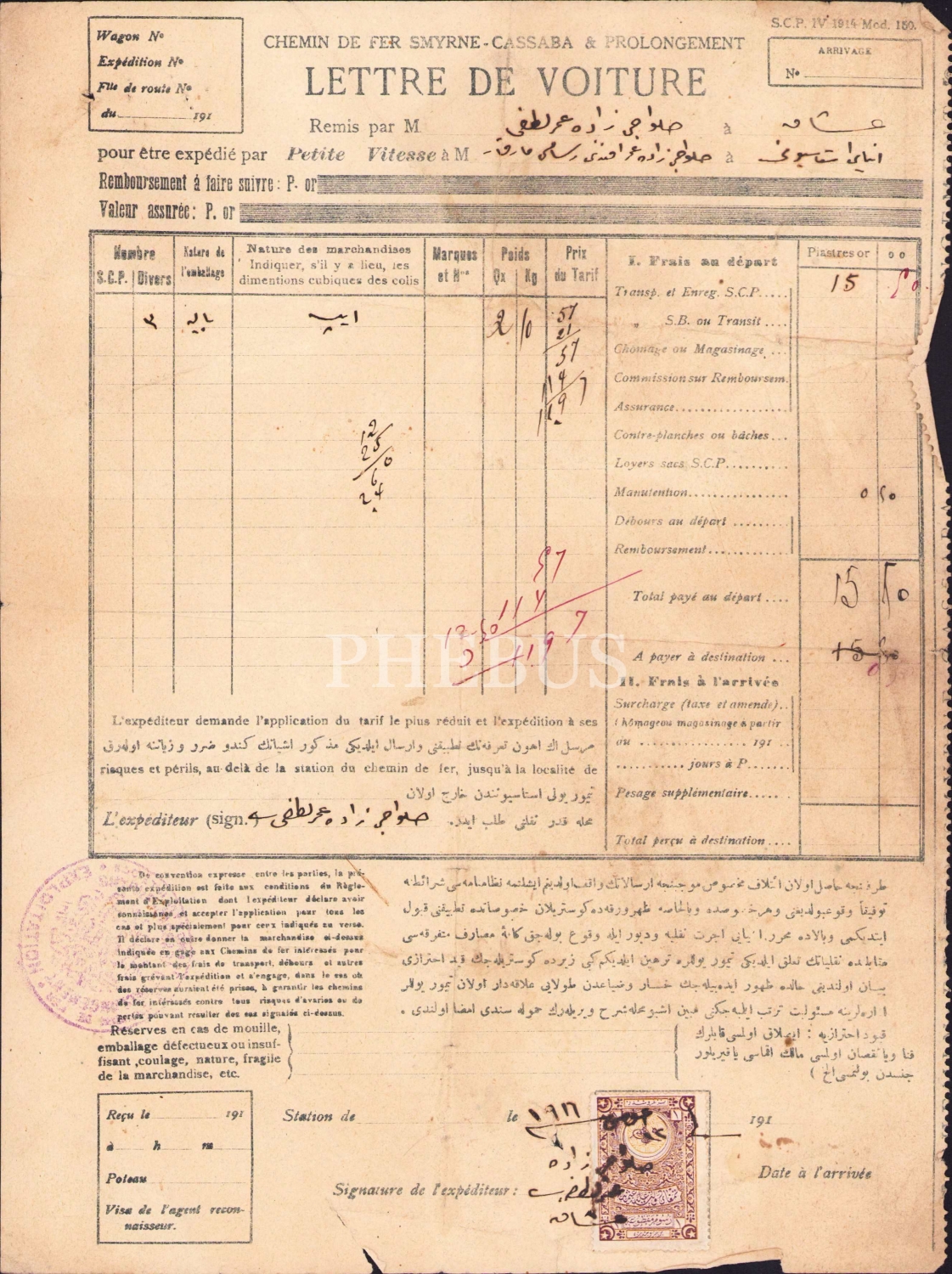 1916 tarihli Fransızca fatura, Osmanlıca Uşak Helvacı Zade Ömer Lütfiye ait, haliyle, 20x29 cm