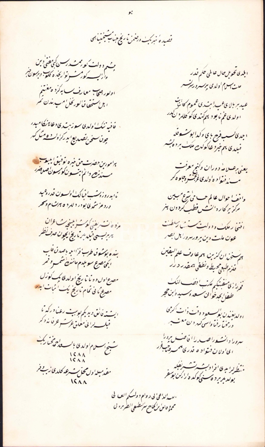 Ahmet Muhtar Bey'in şeyhülislamlığını tebrik için yazılmış Faik mahlaslı kaside, 20x32 cm