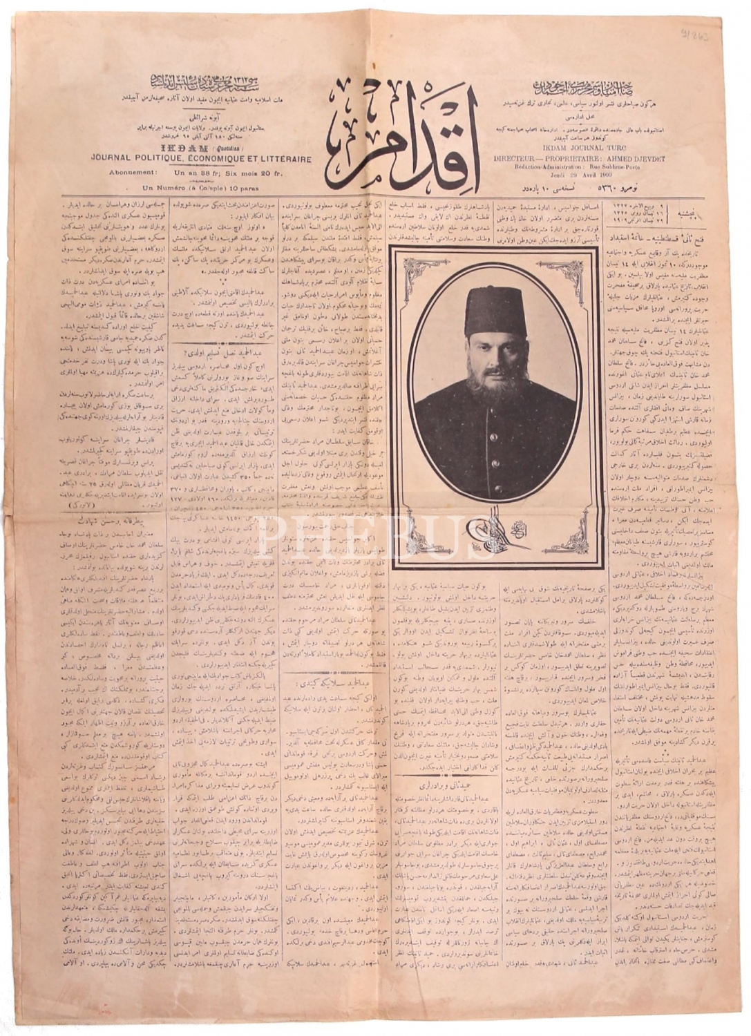 Osmanlıca İkdam gazetesi, 29 Nisan 2909, Abdülhamid Nasıl Teslim Oldu?, 4 sayfa, 40x60 cm