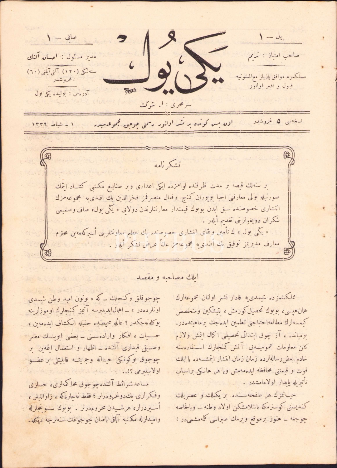 Osmanlıca Yeni Yol - resimli çocuk mecmuası, Sayı: 1, muharriri A. Şevket, 1 Şubat 1339, 17 sayfa, 19x26 cm