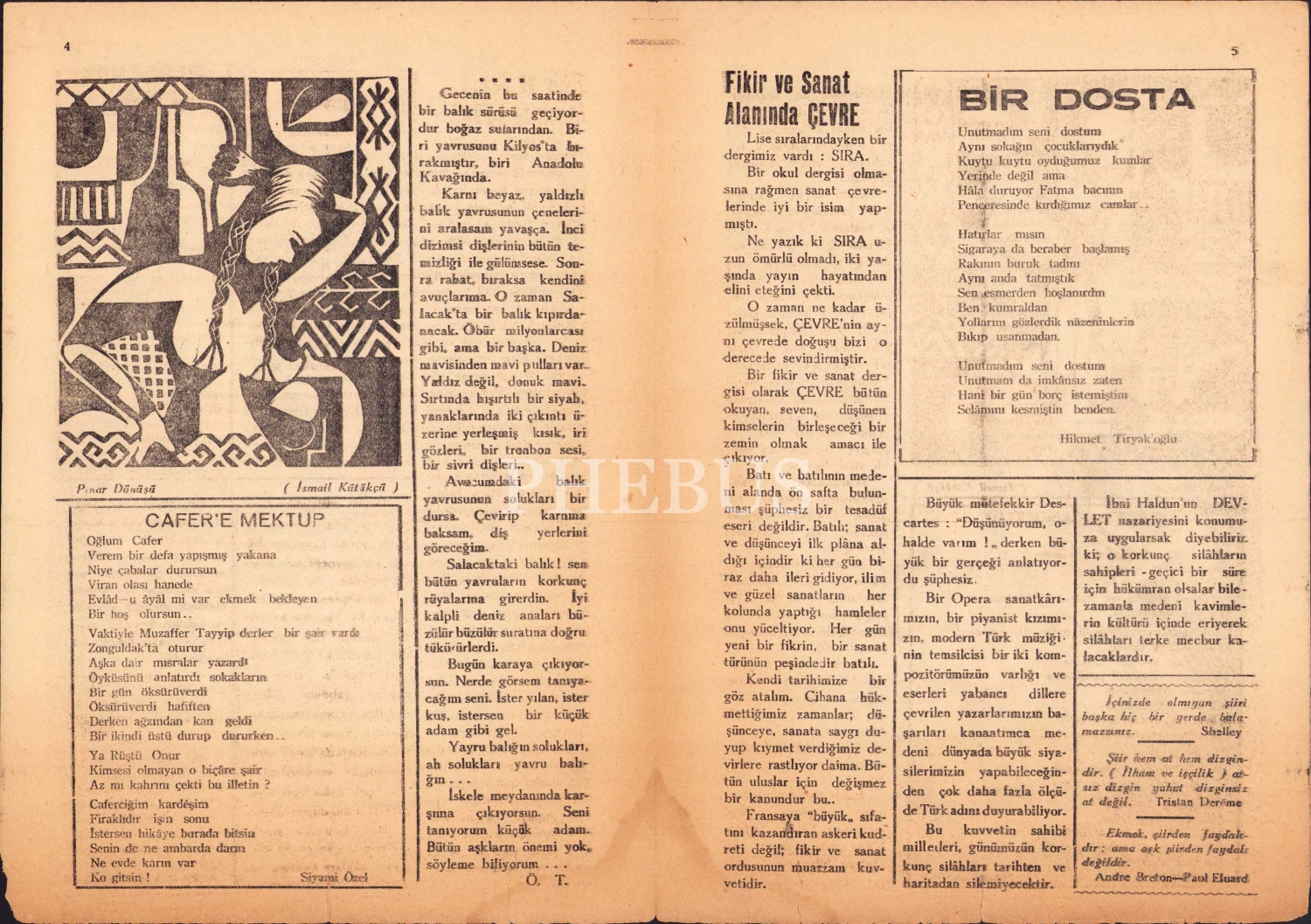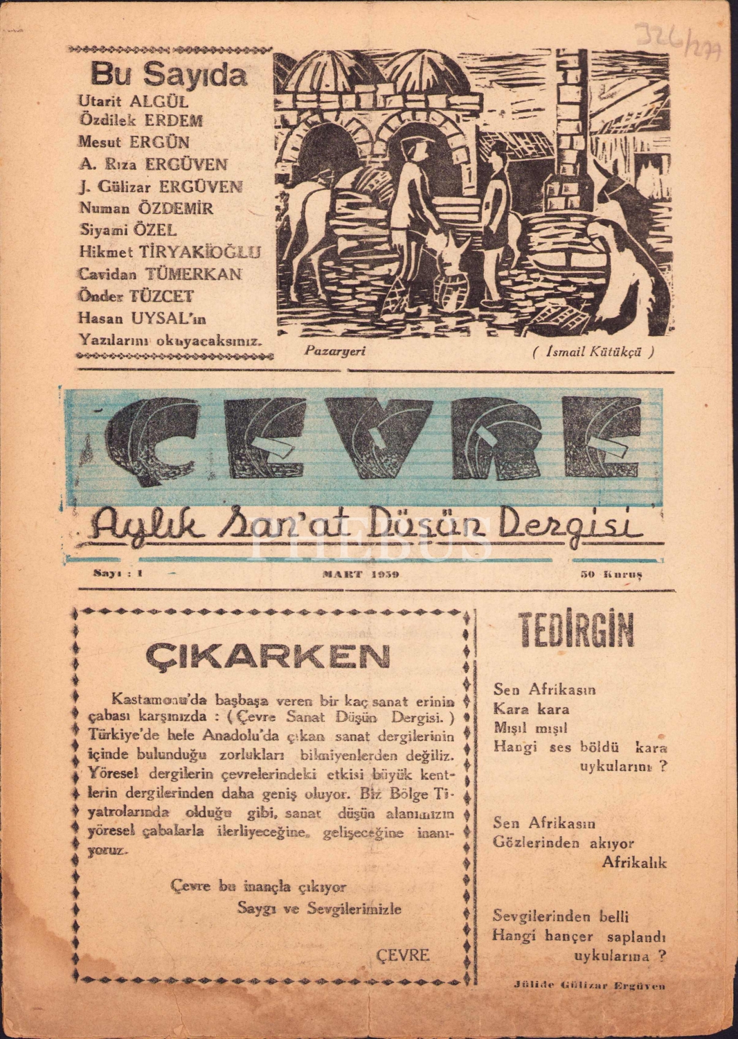 Çevre - Aylık Sanat Düşün Dergisi, 1. sayı, Mart 1959, sayfa kenarları haliyle, 8 sayfa, 19x27 cm
