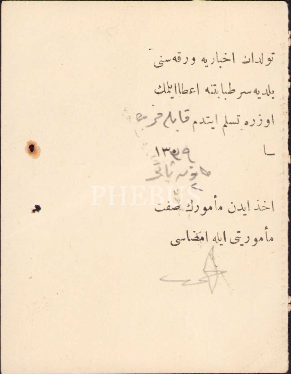 Osmanlıca doğum [tevellüd] belgelerine karşı verilen makbuz, 1329, 6x9 cm