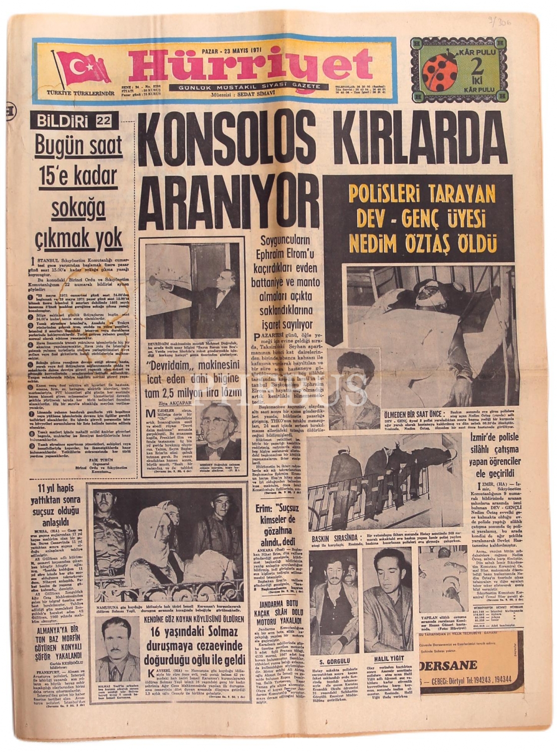 Hürriyet gazetesi, 23 Mayıs 1971, müessisi Sedat Simavi,