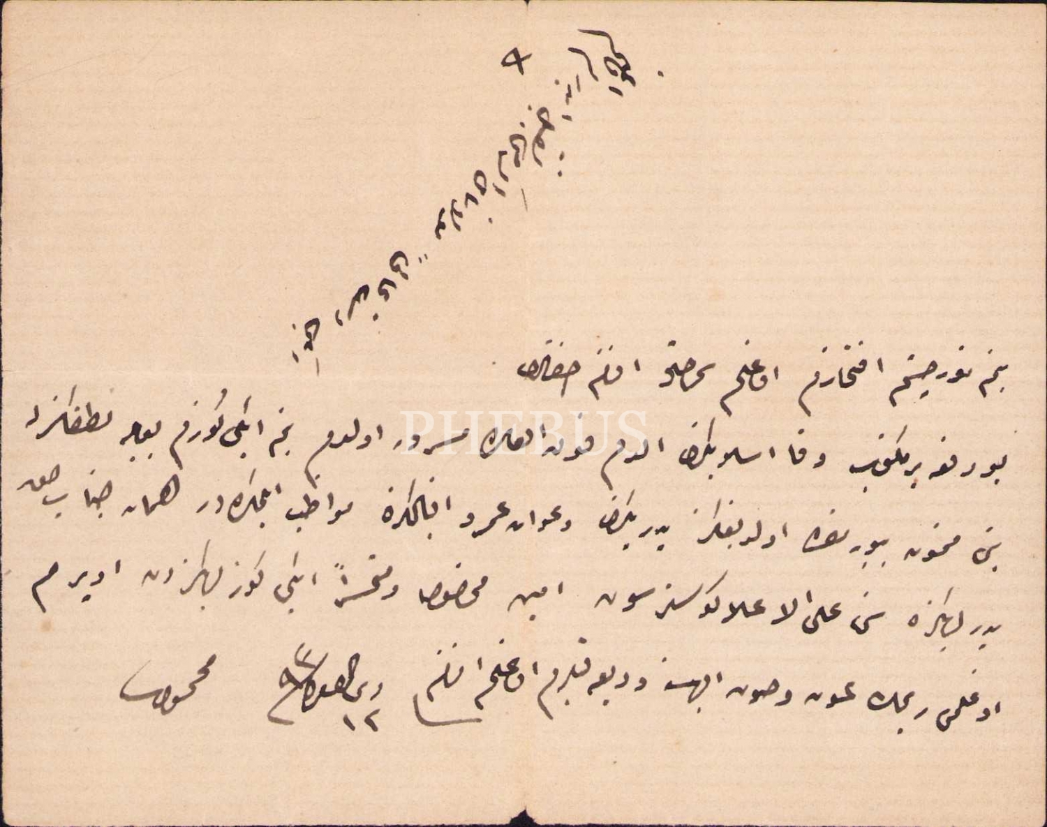 Sadrazam Mahmud imzalı Nedim Paşa'ya gönderilmiş, 1293 tarihli Osmanlıca mektup, 12x10 cm