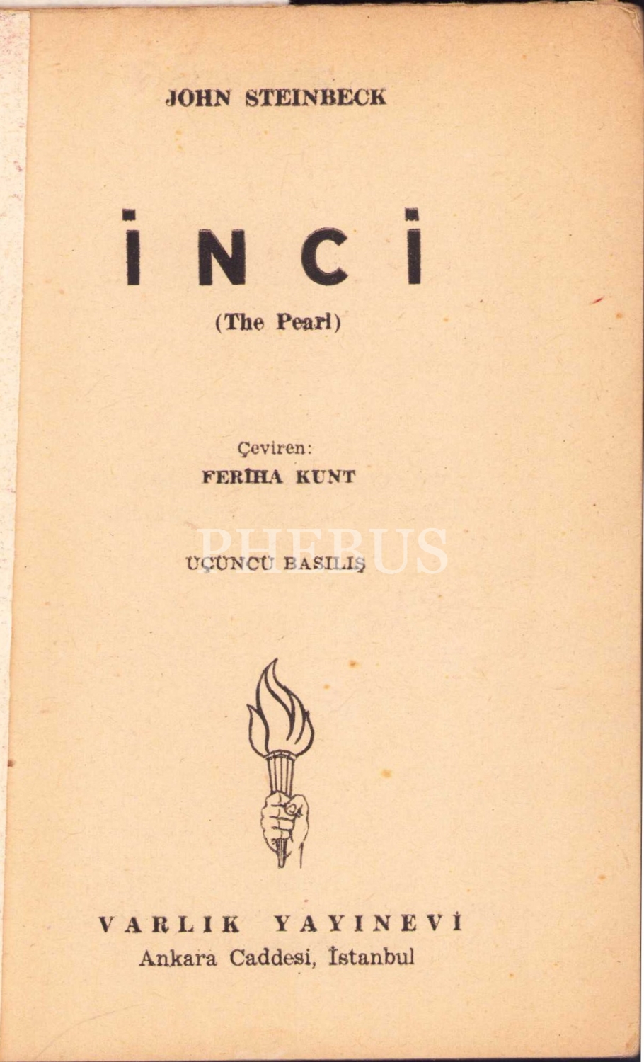 İnci -Roman-, John Steinbeck, Çeviri Feriha Kunt, 1955, 95 sayfa