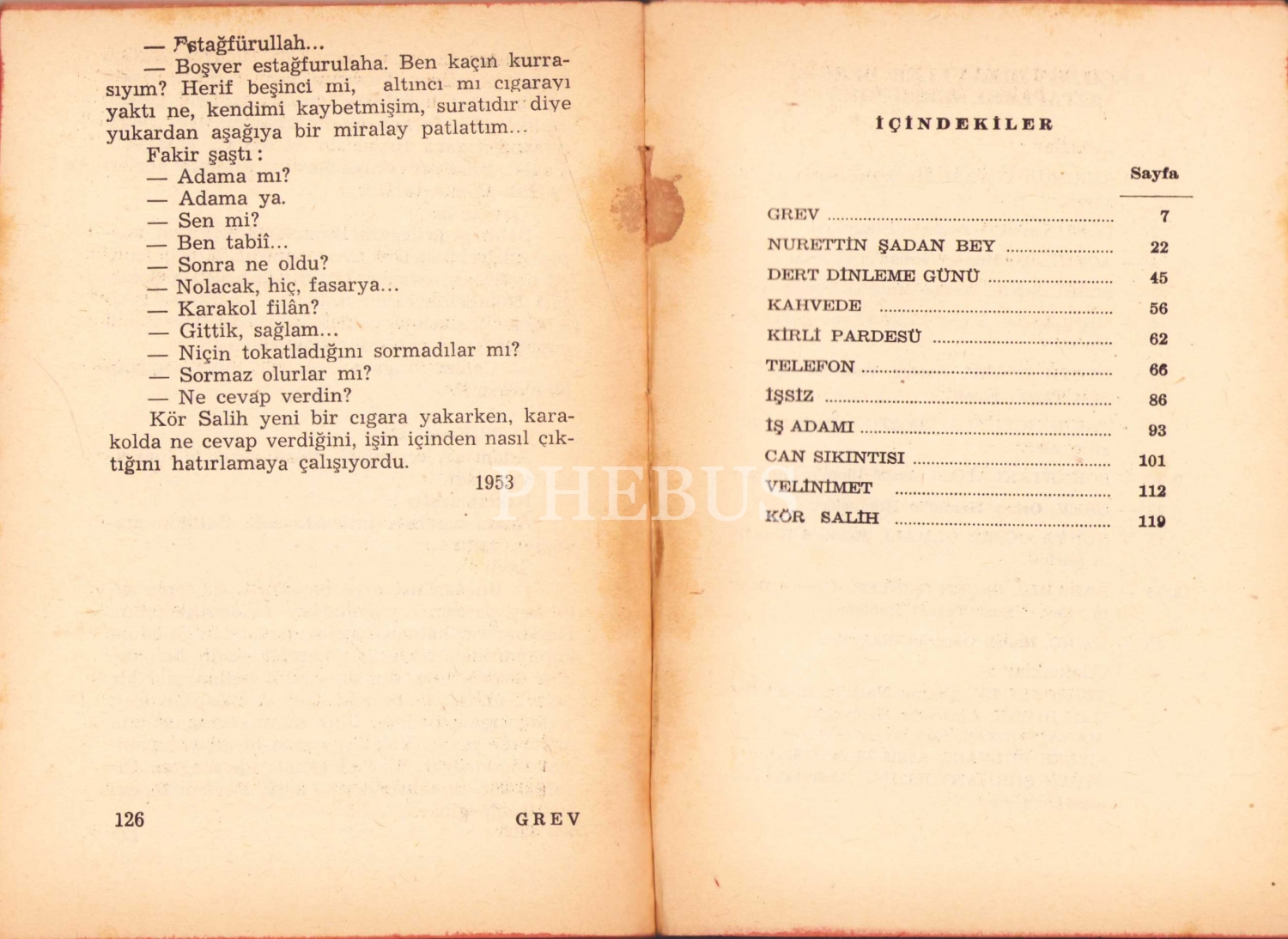 Grev -Hikayeler-, Orhan Kemal, ilk baskı 1954, 126 sayfa