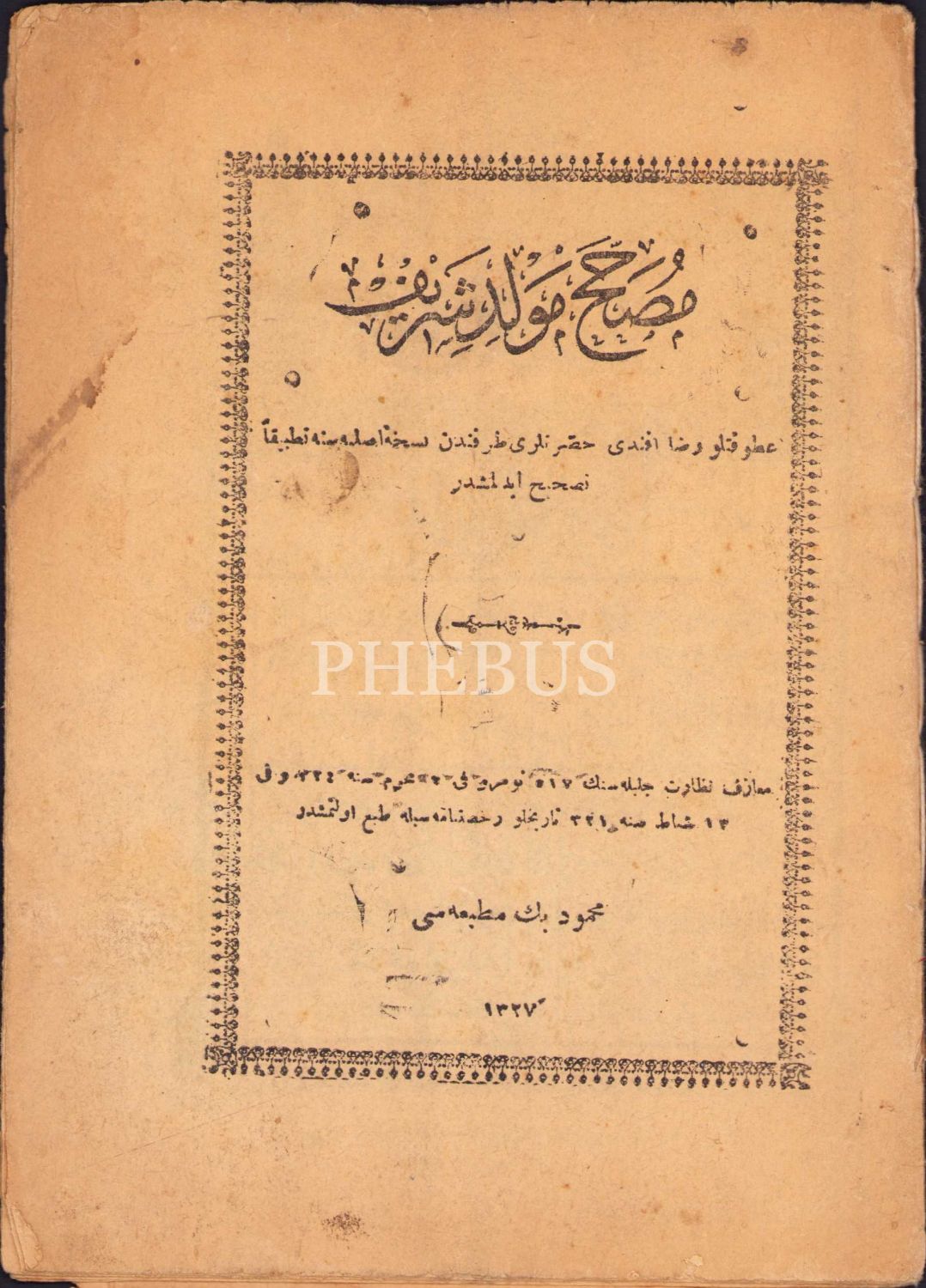 Osmanlıca Musahhah Mevlid-i Şerîf, Süleyman Çelebi, Hazırlayan Rıza, İstanbul 1327 Mahmud Bey Matbaası, 31 sayfa, 21x15 cm