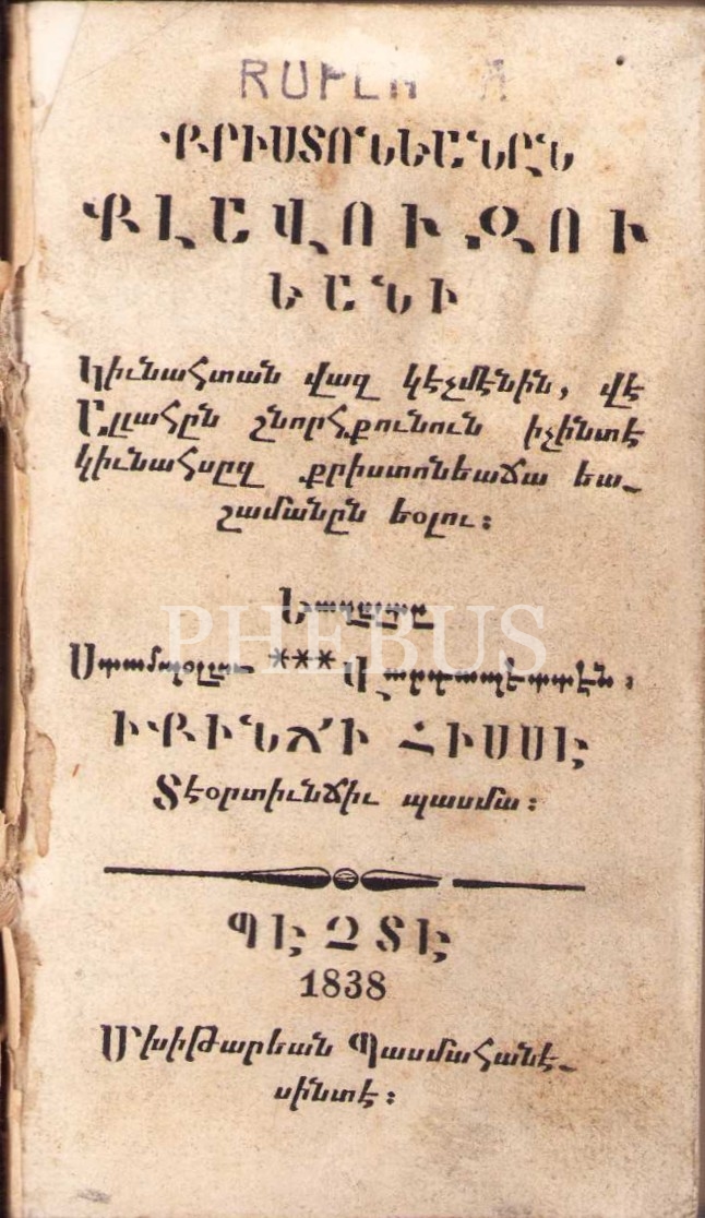 Ermeni Harfli Türkçe-Ermenice mülemma kitap 1838, 321 sayfa, 11x6 cm